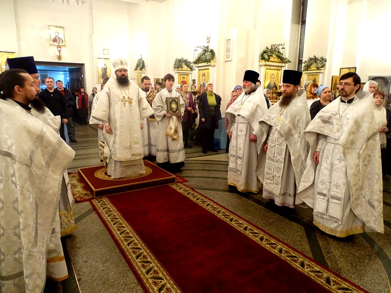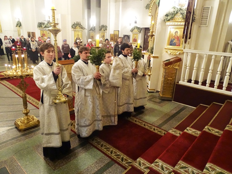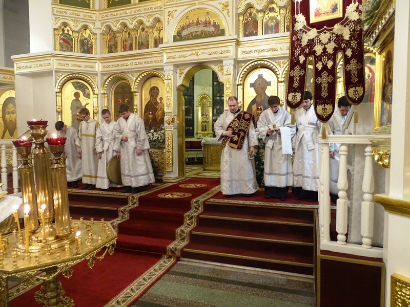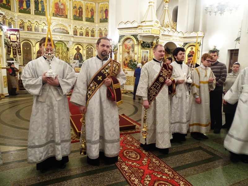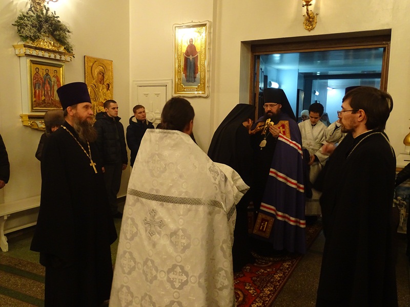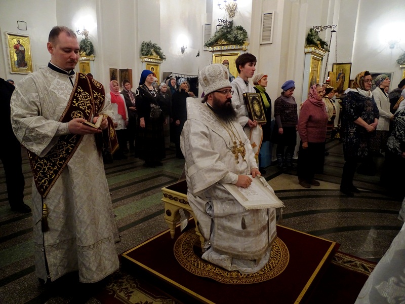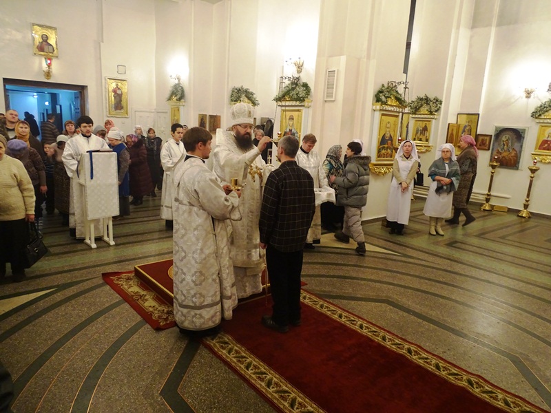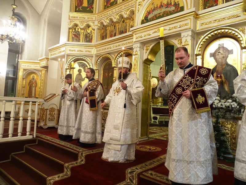 Архипастырю сослужили: исполняющий обязанности секретаря епархии иеромонах Герман (Мельников), благочинный Норильского округа протоиерей Владимир Иванов, штатные клирики кафедрального собора.