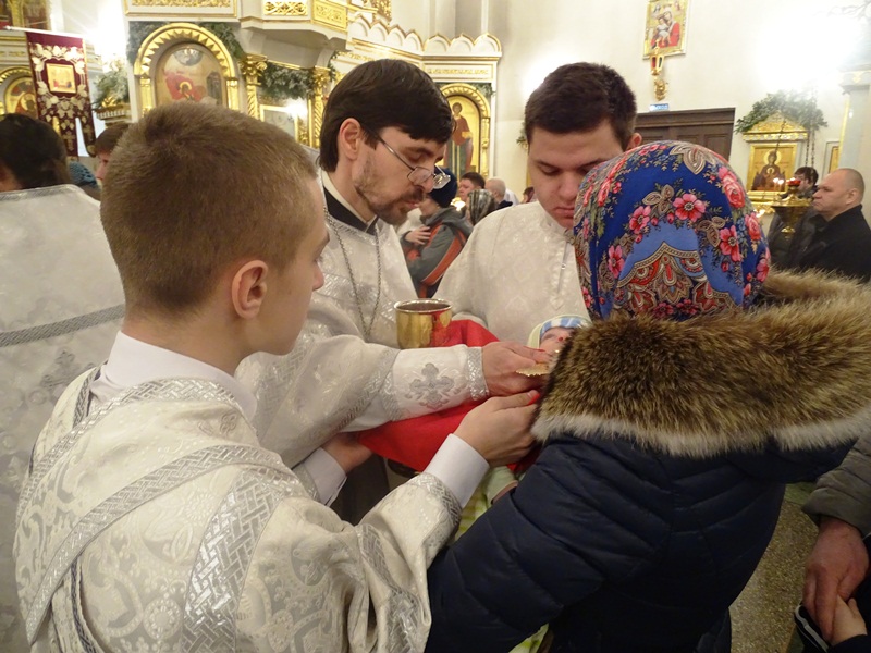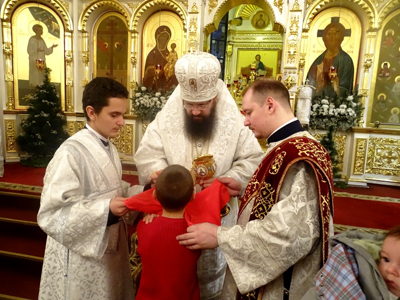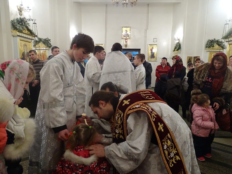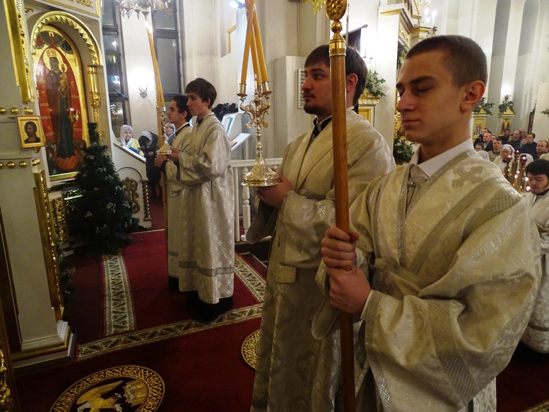 По окончании Богослужения священнослужители совершили славление празднику Рождества Христова.