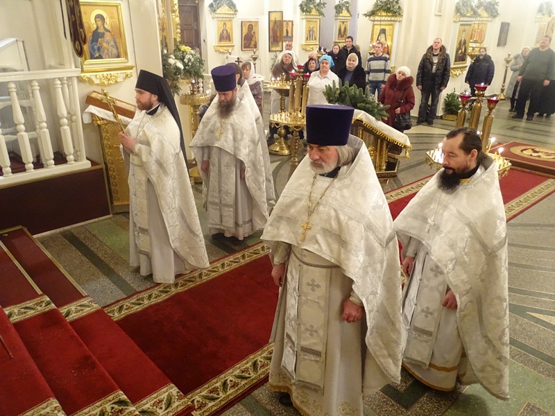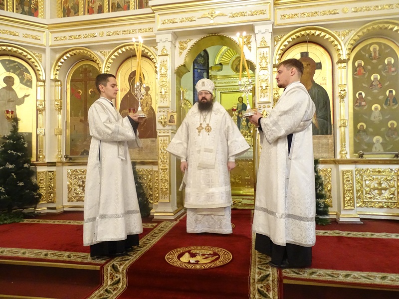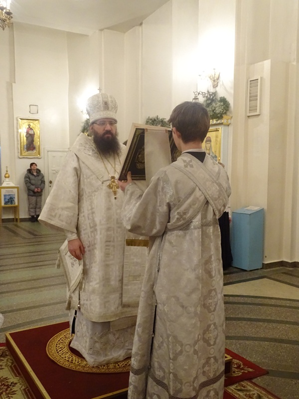 Его Преосвященству сослужили: исполняющий обязанности секретаря епархии иеромонах Герман (Мельников), благочинный Норильского округа протоиерей Владимир Иванов, штатные клирики кафедрального собора.