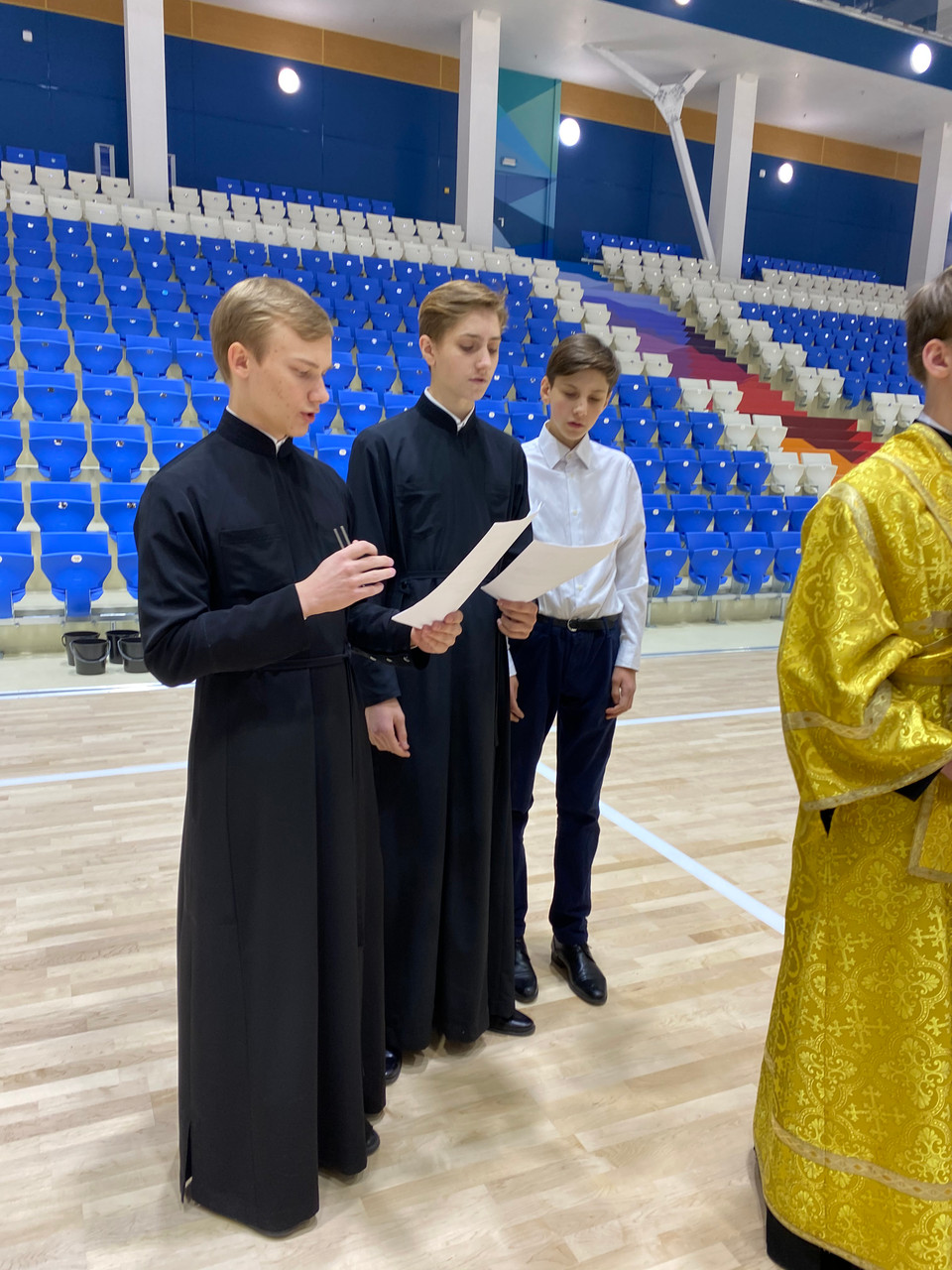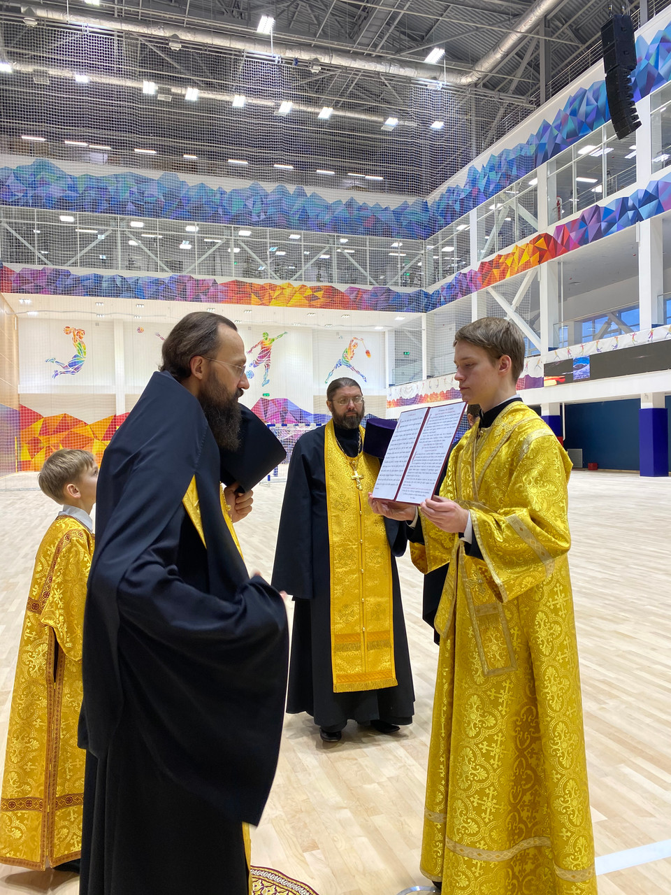 Владыка совершил молебное пение. Его Преосвященству сослужили: благочинный Норильского округа иерей Геннадий Дубинко; ключарь кафедрального собора в честь иконы Божией Матери «Всех скорбящих Радость» города Норильска иерей Алексий Пирогов; руководитель епархиального отдела по делам молодежи иерей Димитрий Прохоров; ответственный по вопросам физической культуры и спорта в Норильской епархии иерей Никита Челядинов.