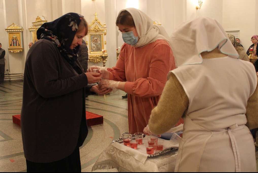 На сугубой ектении были вознесены молитвенные прошения о избавлении от коронавирусной инфекции.