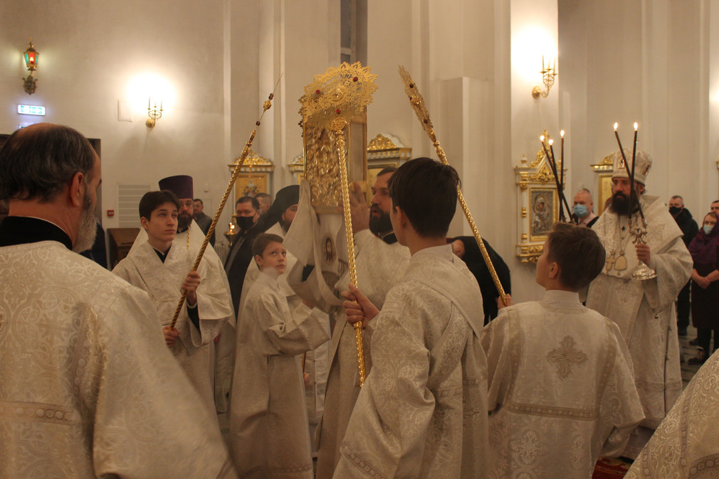 На кануне Архипастырь совершил Всенощное бдение.