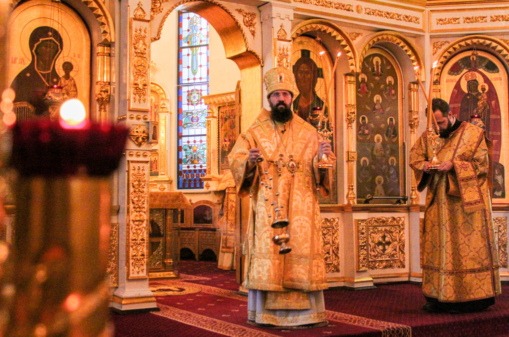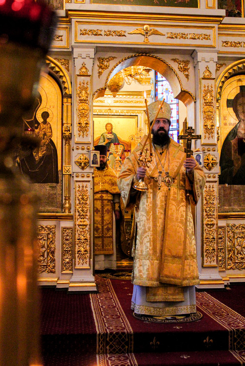 После сугубой ектении епископ Агафангел вознес молитву, во время распространения вредоносного поветрия чтомую.