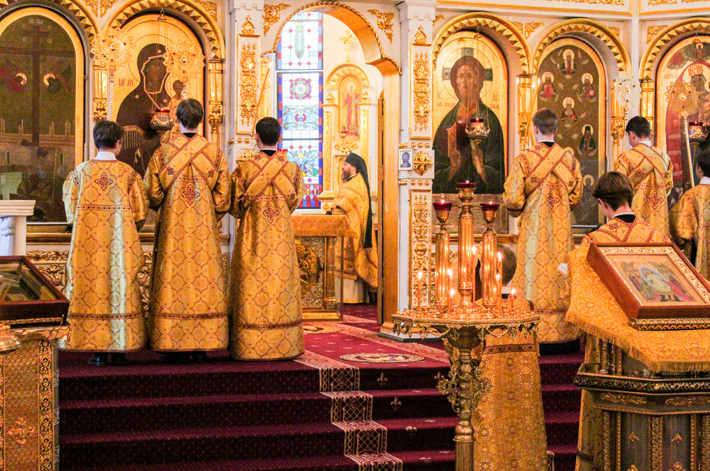 На сугубой ектении были вознесены молитвенные прошения об избавлении от коронавирусной инфекции.