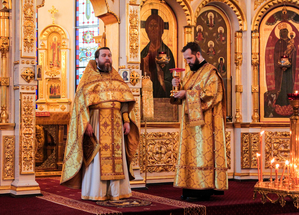 Его Преосвященству сослужили: секретарь Норильской епархии иеромонах Герман (Мельников); ключарь кафедрального собора иерей Алексий Пирогов; штатные клирики кафедрального собора.