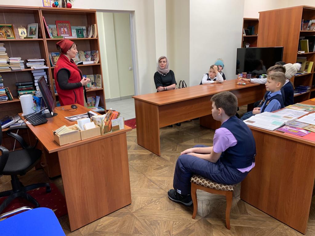 Дети посетили тематическую выставку книг в библиотеке архиерейского подворья храма новомучеников и исповедников Церкви Русской.