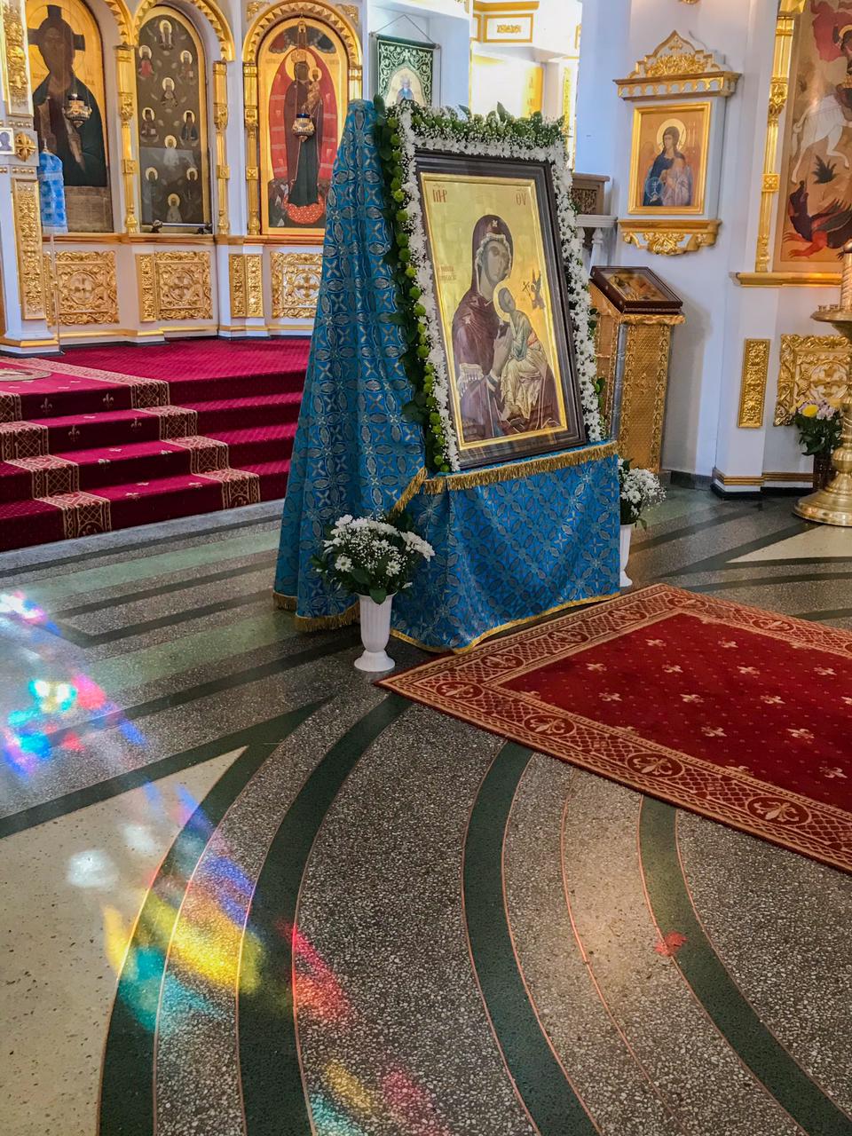 По окончании Литургии епископ Агафангел совершил славление перед иконой Божией Матери «Страшное Предстательство».