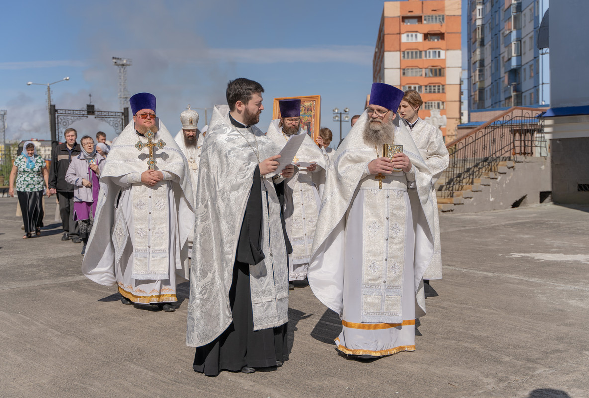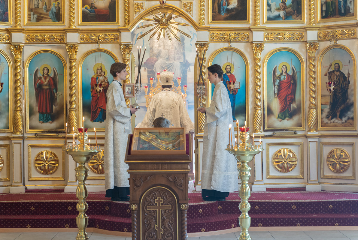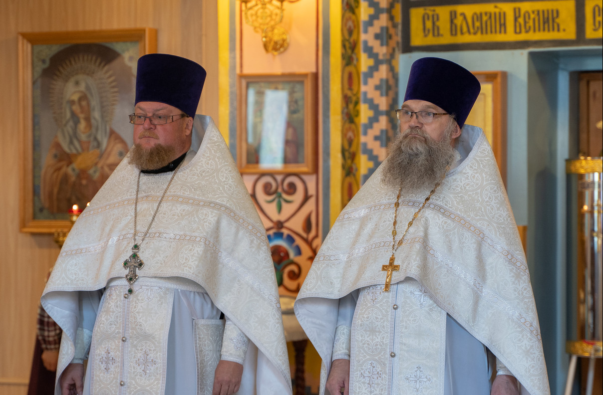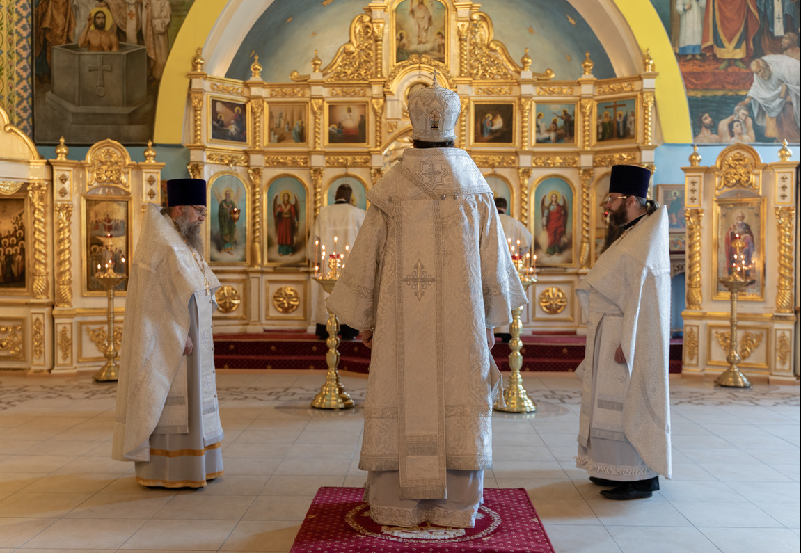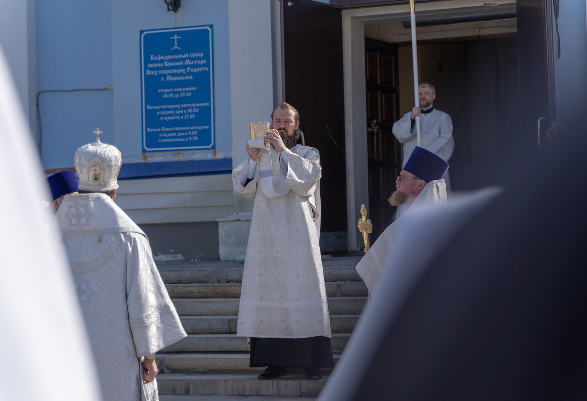 Его Преосвященству сослужили; секретарь Норильской епархии иеромонах Герман (Мельников); настоятель храма Святой Троицы в районе Таланах Города Норильска протоиерей Даниил Тихонов; ключарь кафедрального собора иерей Алексий Пирогов; настоятель храма в честь Преображения Господня в районе Кайеркан города Норильска иерей Александр Попов; соборное духовенство кафедрального собора города Норильск.