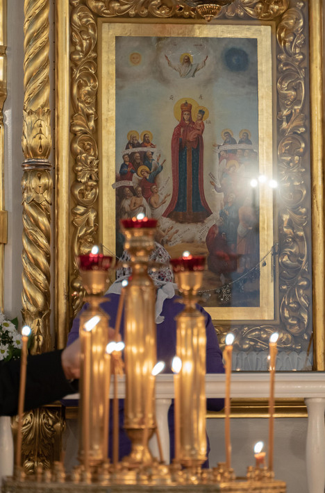 28 августа 2021 года, в день Успения Пресвятой Богородицы, Преосвященнейший Агафангел, епископ Норильский и Туруханский, совершил Божественную литургию в кафедральном соборе в честь иконы Божией Матери «Всех скорбящих Радость» города Норильска.