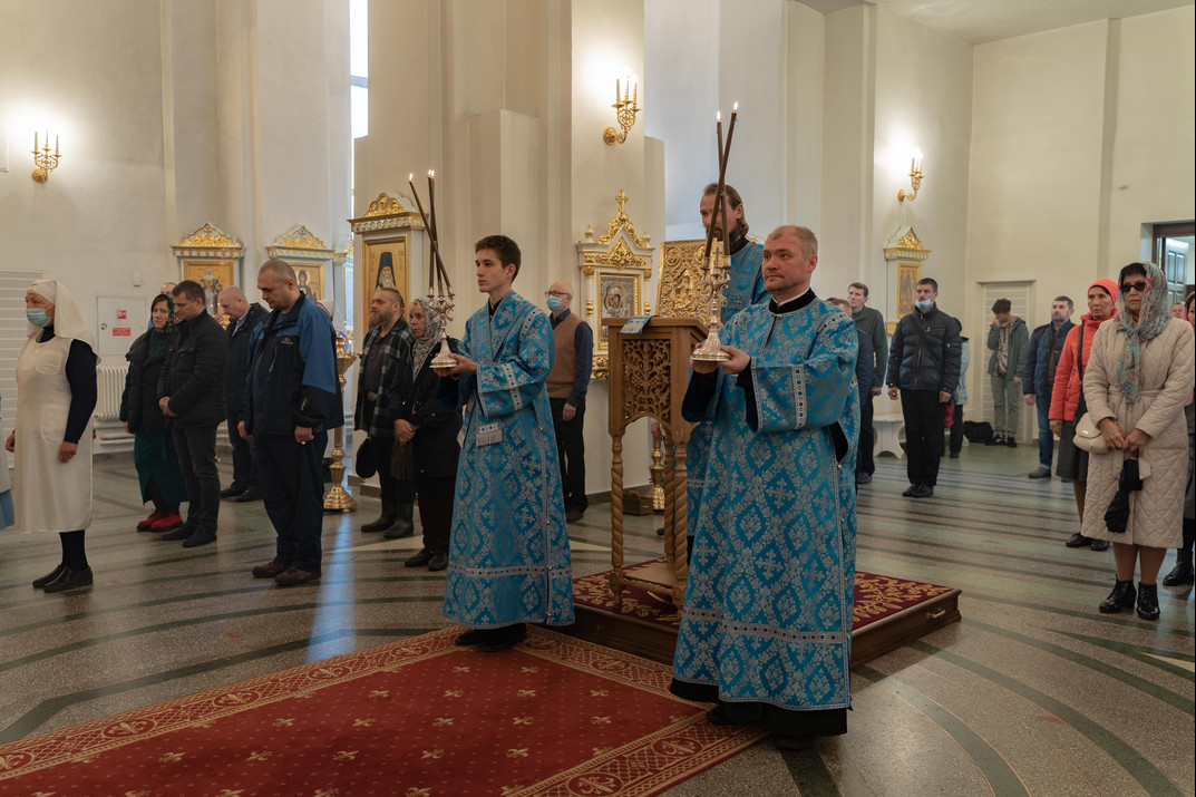 На сугубой ектении были вознесены молитвенные прошения в связи с угрозой распространения коронавирусной инфекции.
