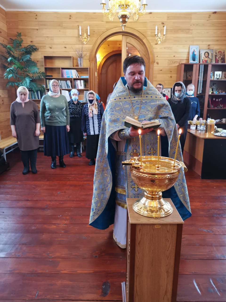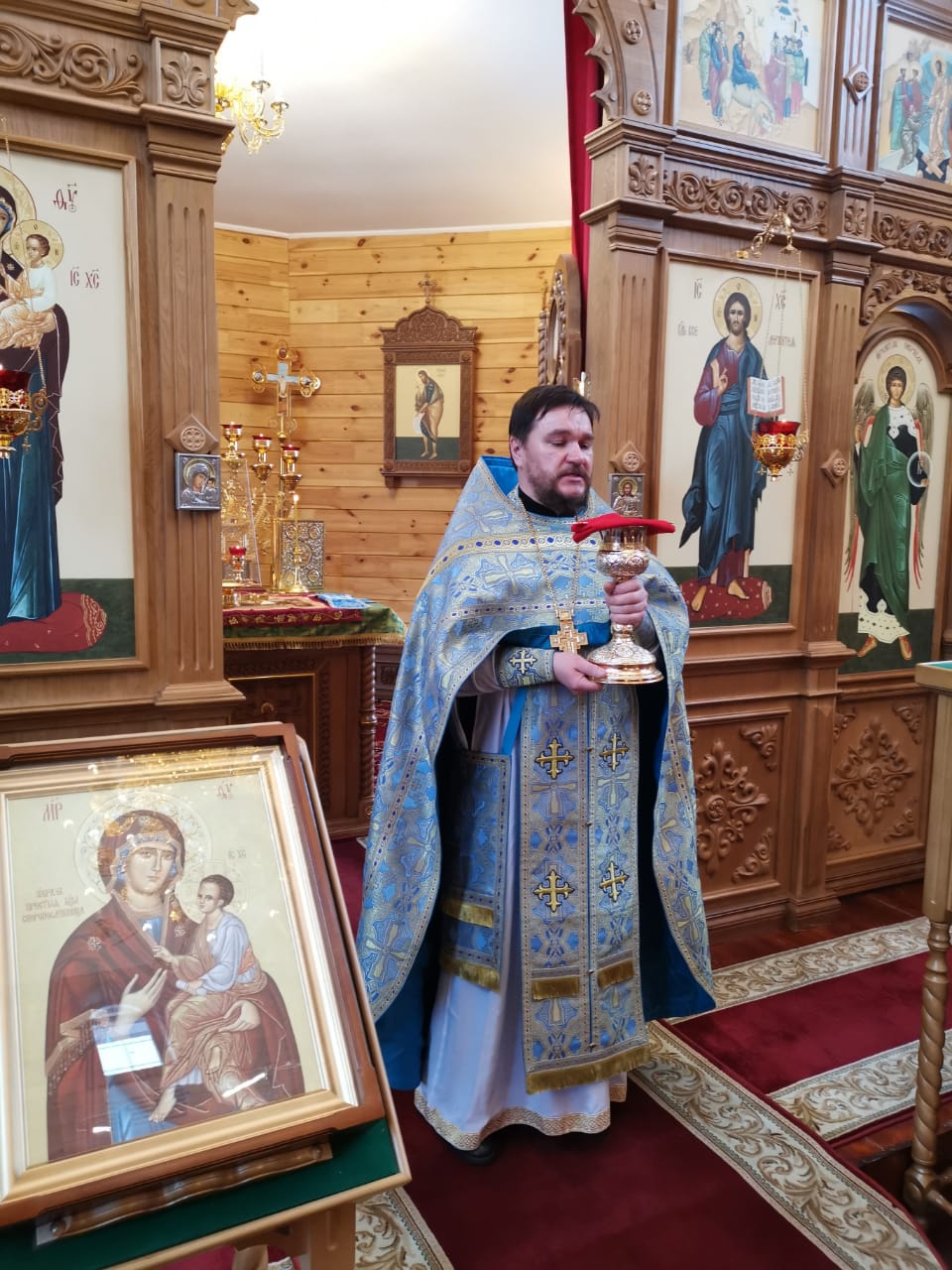 По окончании Божественной Литургии был совершено освящение воды, после чего отец Софроний произнес проповедь и поздравил всех собравшихся прихожан с престольным праздником.