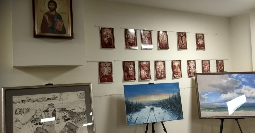 В рамках кочующего мероприятия была представлена выставка картин Таймырских художников и косторезных работ православной тематики из фондов Таймырского Дома народного творчества.