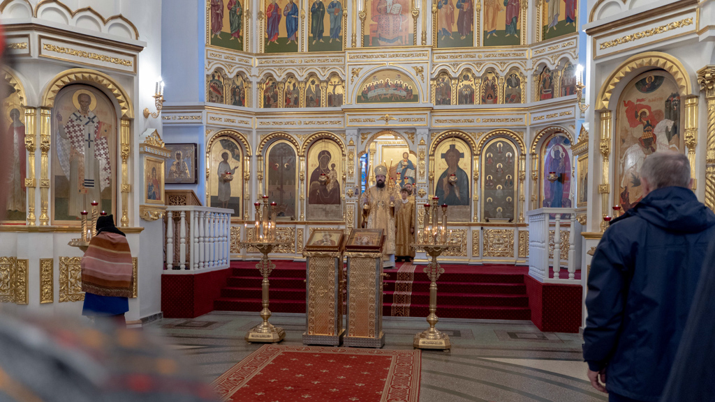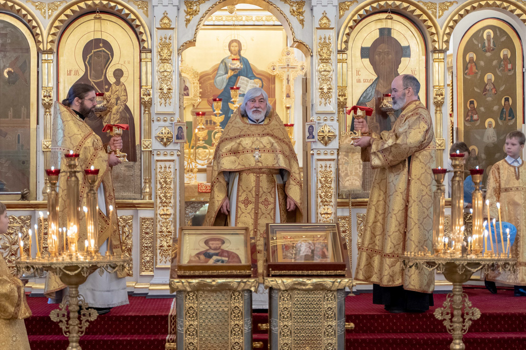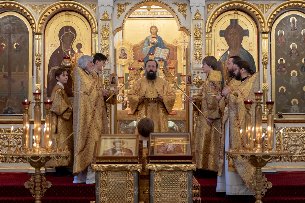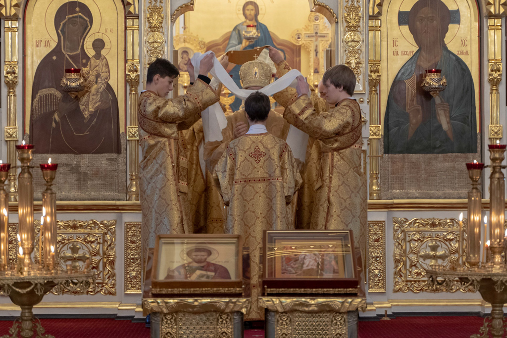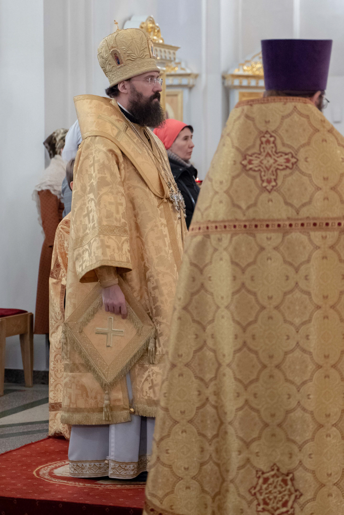 Его Преосвященству сослужили: секретарь Норильской епархии иеромонах Герман (Мельников); духовник епархии протоиерей Владимир Иванов; штатные клирики кафедрального собора.