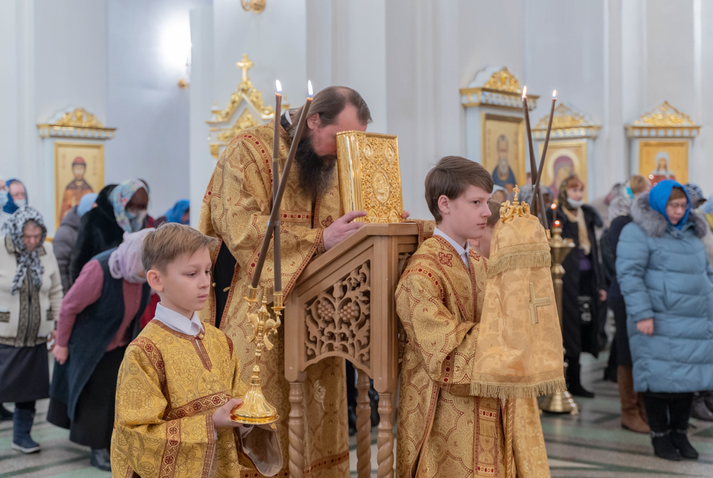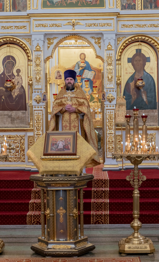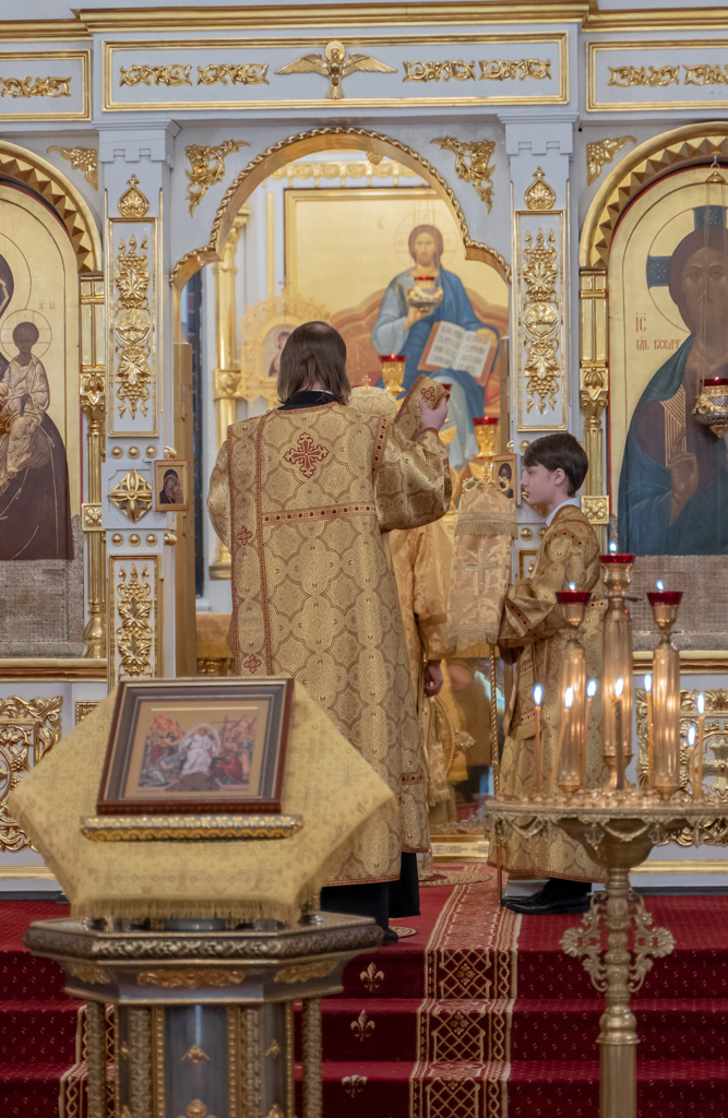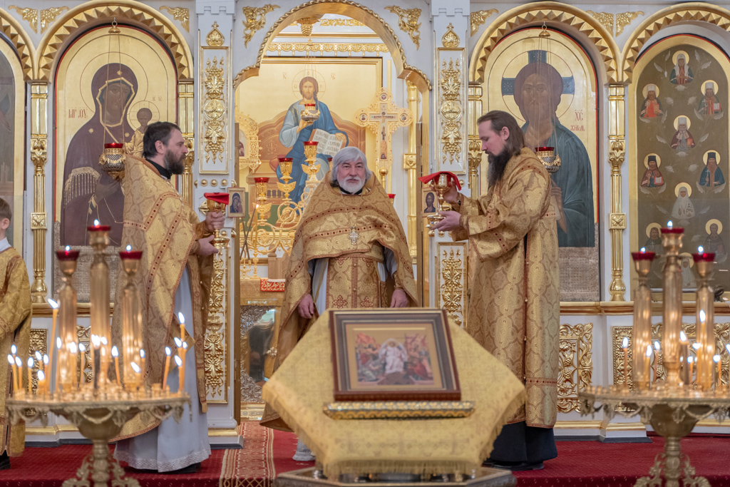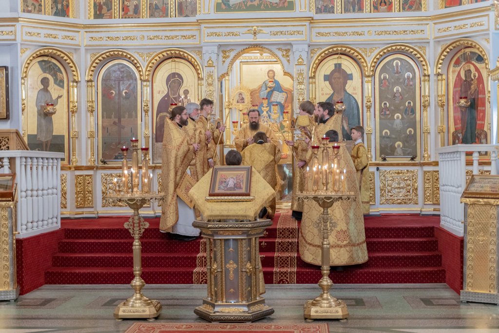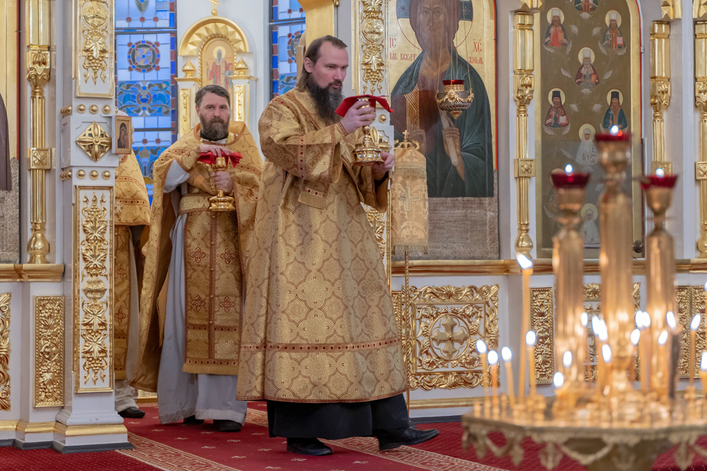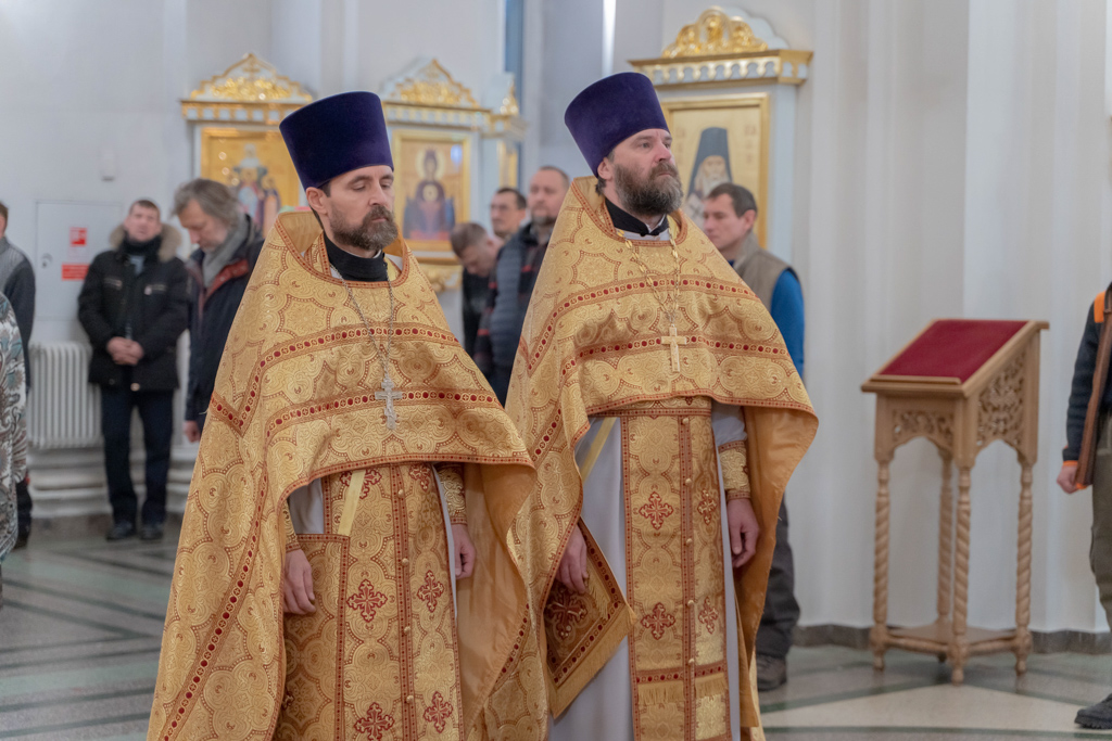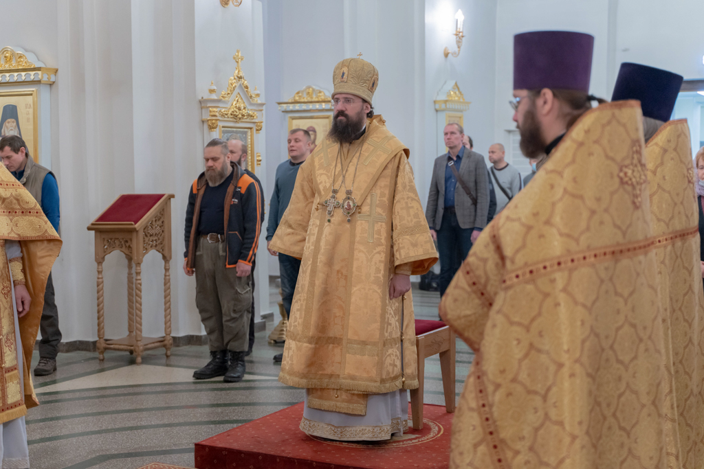 Его Преосвященству сослужили: секретарь Норильской епархии иеромонах Герман (Мельников); духовник епархии протоиерей Владимир Иванов; благочинный Норильского округа иерей Геннадий Дубинко; штатные клирики кафедрального собора.