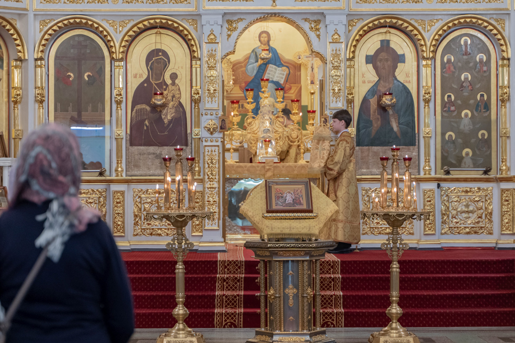 На сугубой ектении были вознесены молитвенные прошения об избавлении от коронавирусной инфекции.