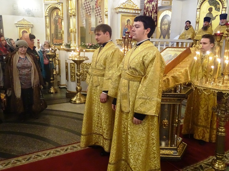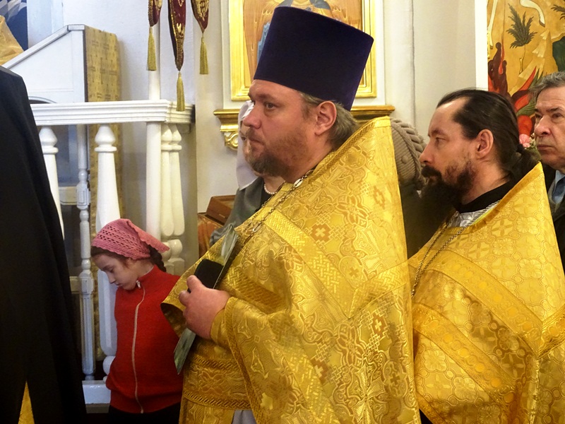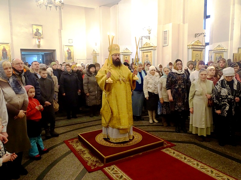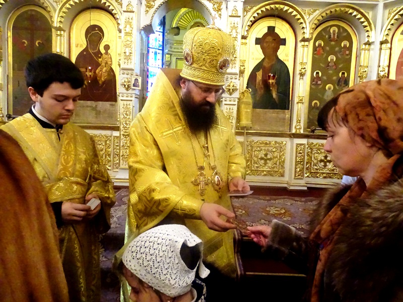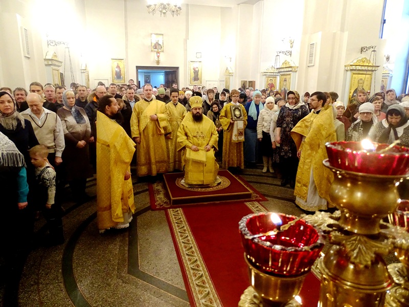 22 февраля 2015 года, в Неделю сыропустную, воспоминание Адамова изгнания (Прощеное воскресенье), Преосвященнейший Агафангел, епископ Норильский и Туруханский, совершил Божественную литургию в кафедральном соборе города Норильска в честь иконы Божией Матери «Всех скорбящих Радость".