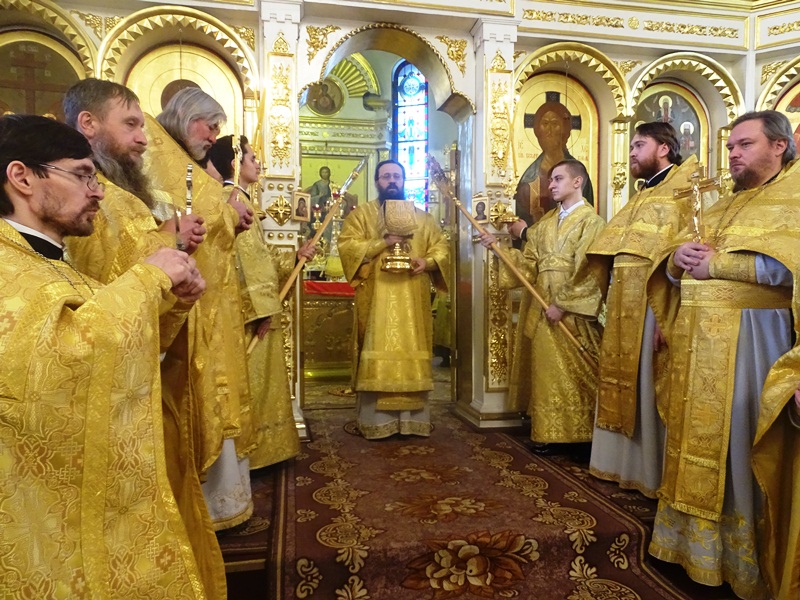В этот день священнослужители и церковнослужители кафедрального собора поздравили Владыку Агафангела с прошедшим днем тезоименитства.