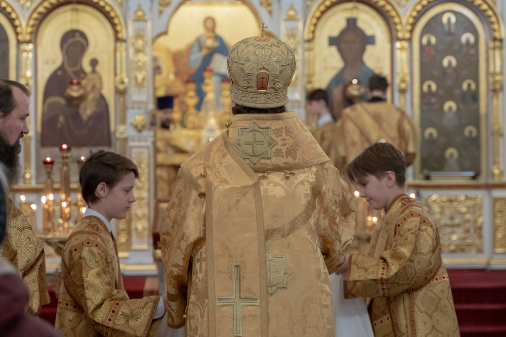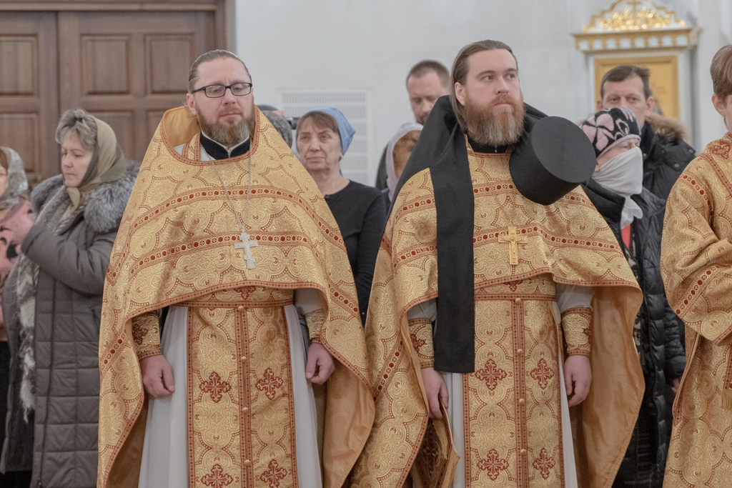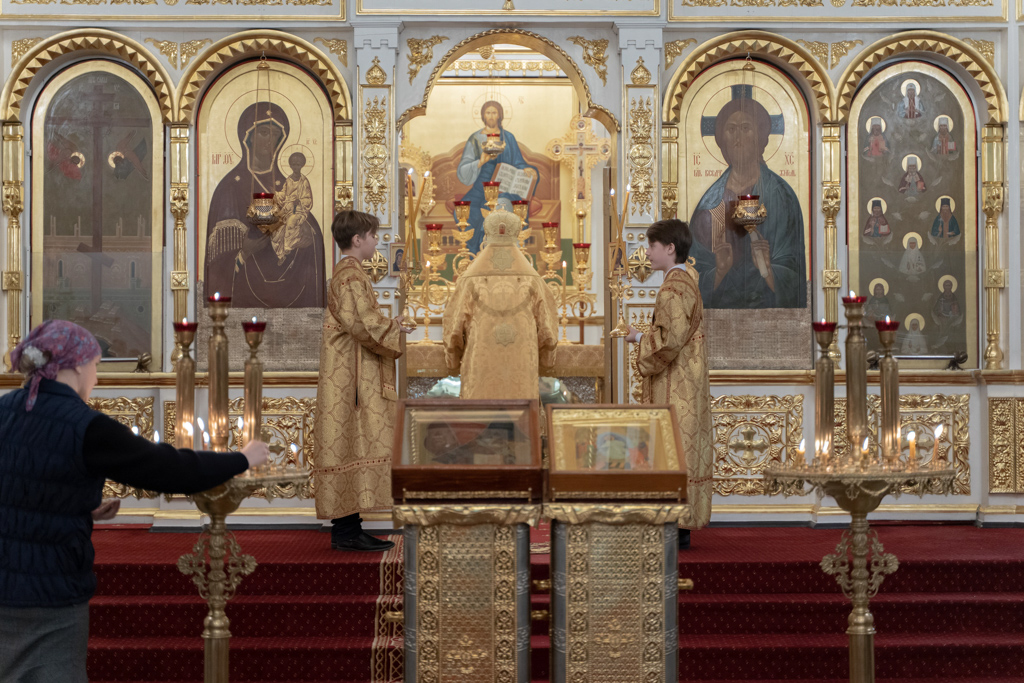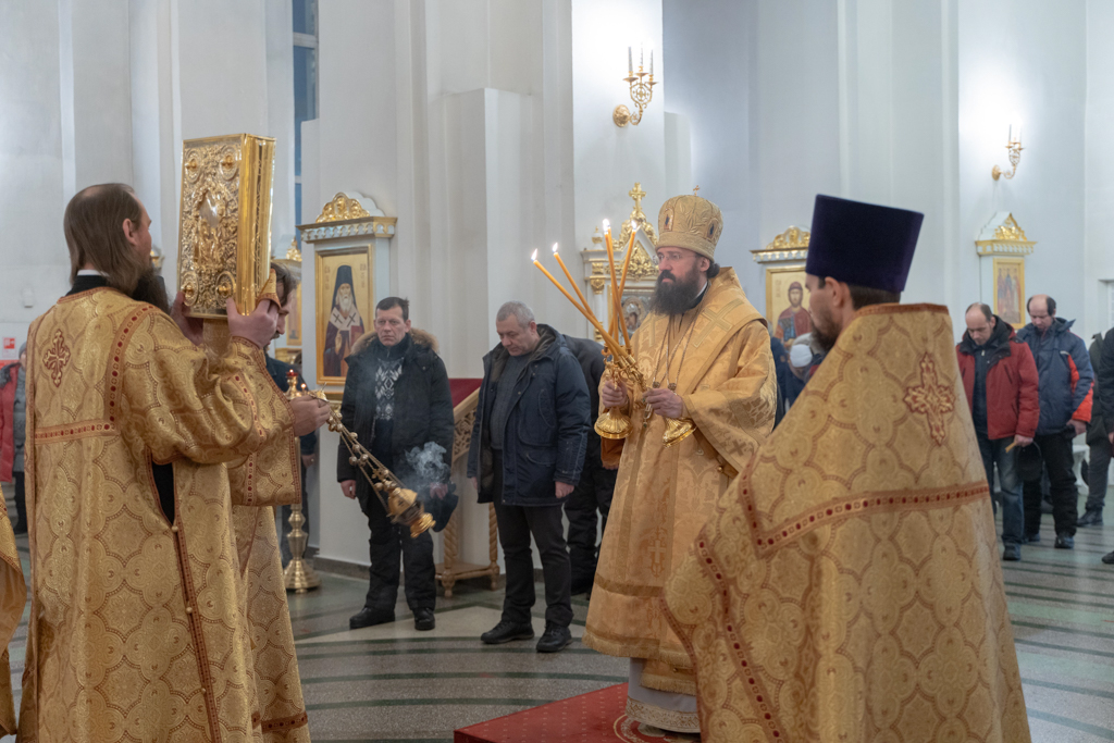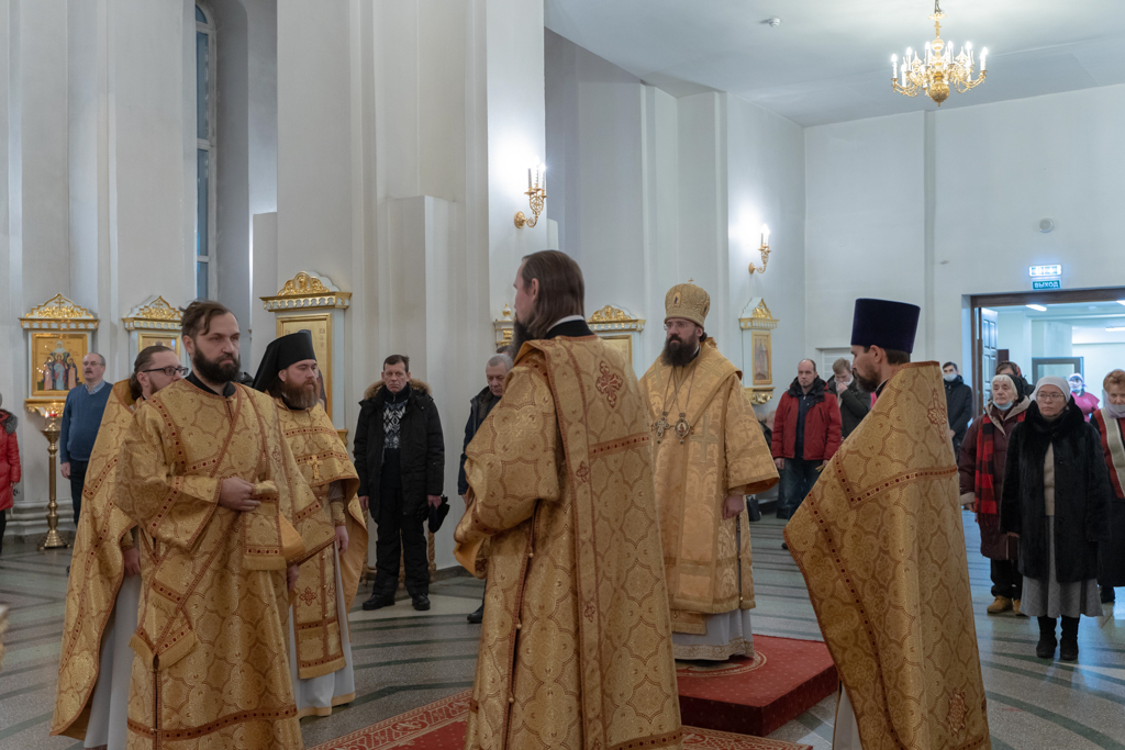 Его Преосвященству сослужили: секретарь Норильской епархии иеромонах Герман (Мельников); штатные клирики кафедрального собора.