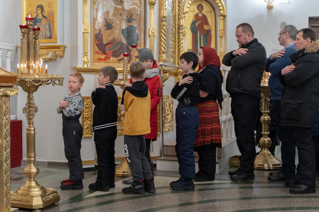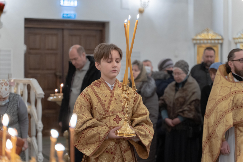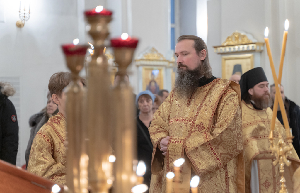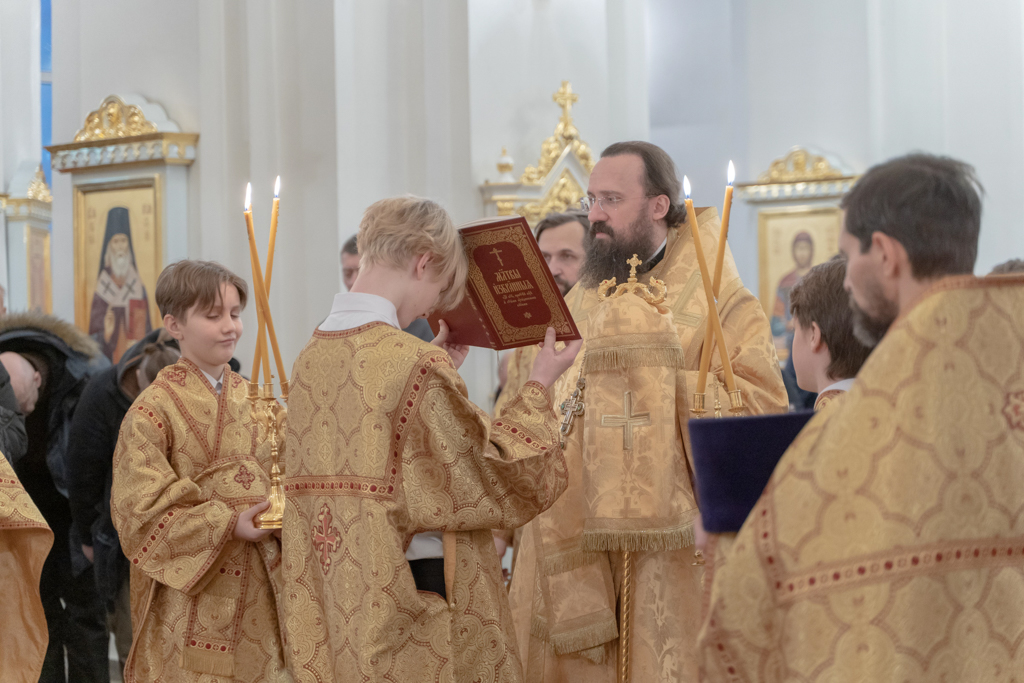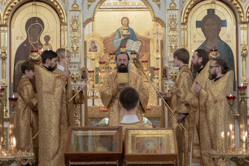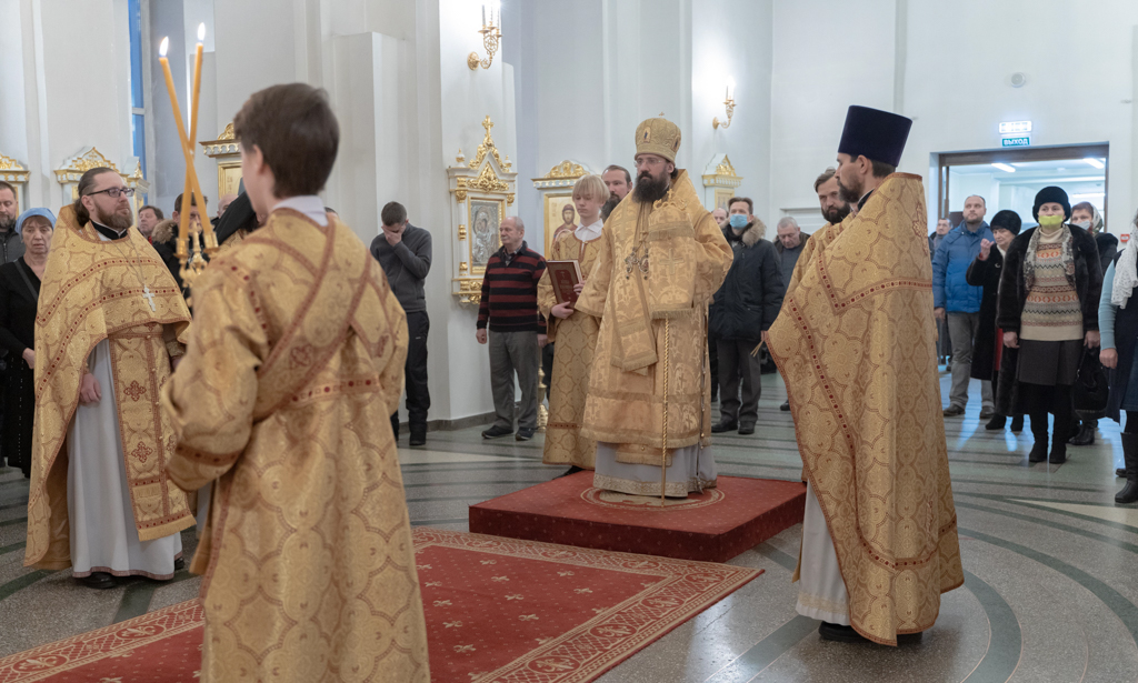 Его Преосвященству сослужили: секретарь Норильской епархии иеромонах Герман (Мельников); штатные клирики кафедрального собора.