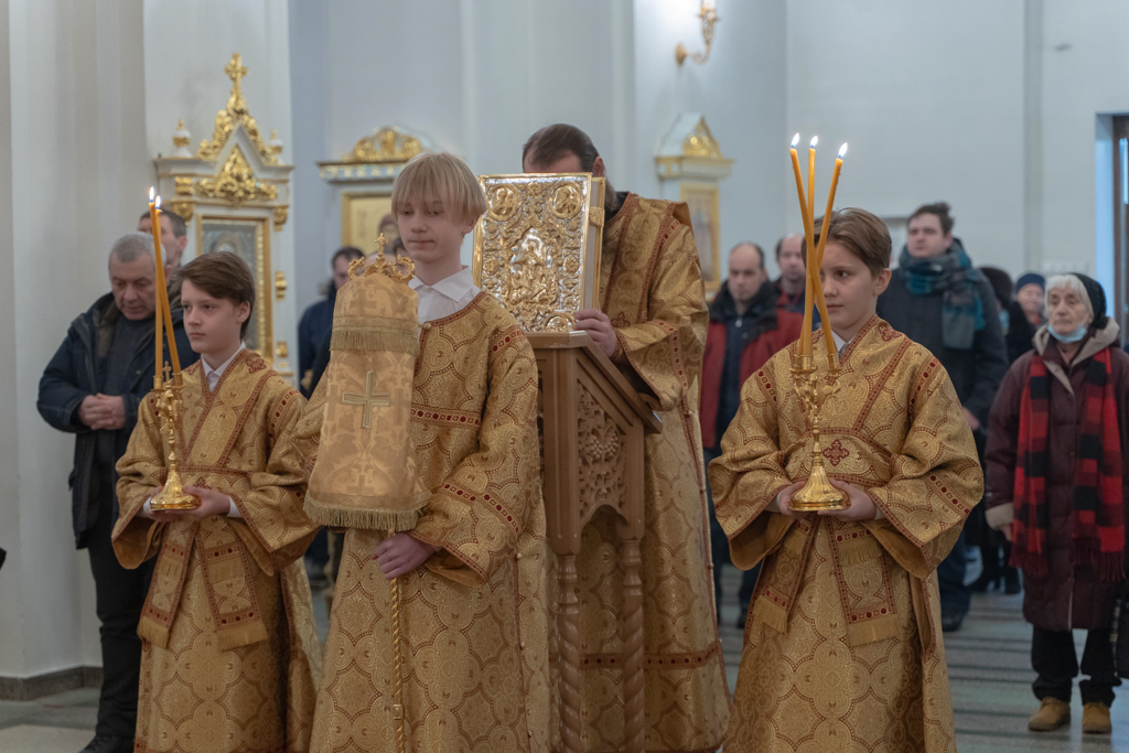 19 декабря 2021 года, в Неделю 26-ю по Пятидесятнице, Преосвященнейший Агафангел, епископ Норильский и Туруханский, совершил Божественную литургию в кафедральном соборе в честь иконы Божией Матери «Всех скорбящих Радость» города Норильска.