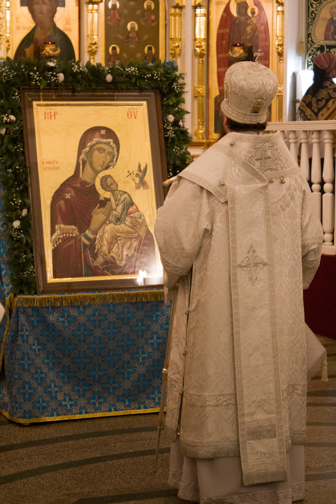 Вечером 7 января 2022 года Преосвященнейший Агафангел, епископ Норильский и Туруханский, совершил великую вечерню в кафедральном соборе в честь иконы Божией Матери «Всех скорбящих Радость» города Норильска. По сложившейся традиции, перед началом богослужения из алтаря собора на центр храма была изнесена икона Божией Матери «Страшное Предстательство».