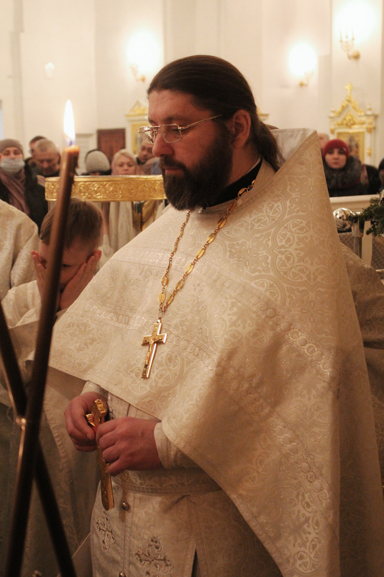 Его Преосвященству сослужили: секретарь Норильской епархии иеромонах Герман (Мельников); ключарь кафедрального собора иерей Алексий Пирогов; штатные клирики кафедрального собора.