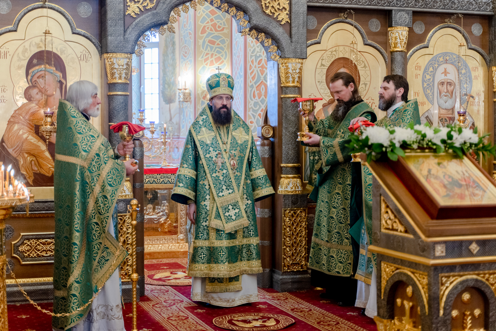 На Литургии Его Преосвященству сослужили: духовник епархии протоиерей Владимир Иванов; благочинный Норильского округа, настоятель храма иерей Геннадий Дубинко; штатные клирики храма.