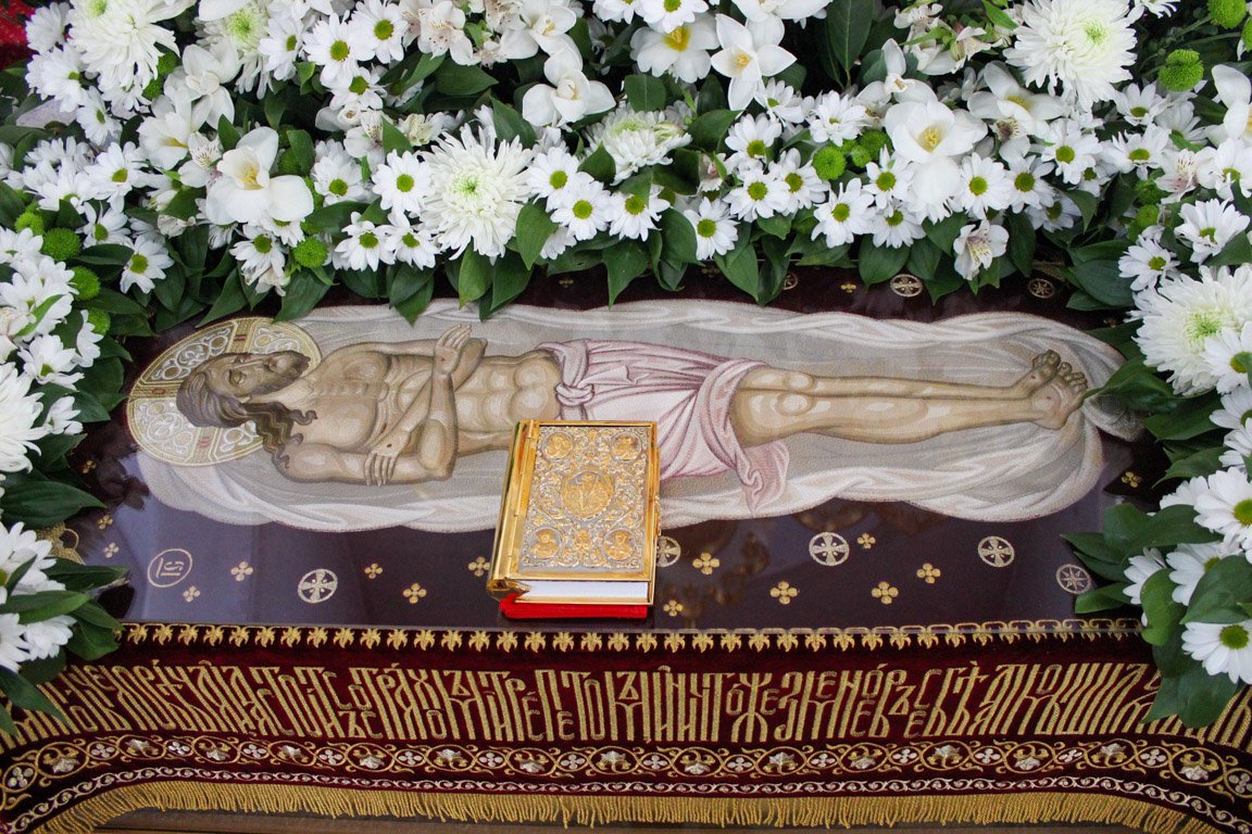 В конце вечерни, при пении тропаря «Благообразный Иосиф, с древа снем Пречистое Тело Твое», из алтаря на середину храма была перенесена Плащаница с изображением погребения Христа.