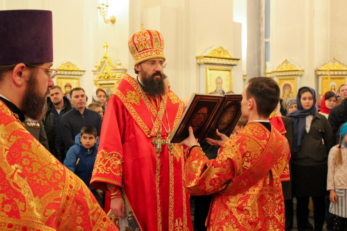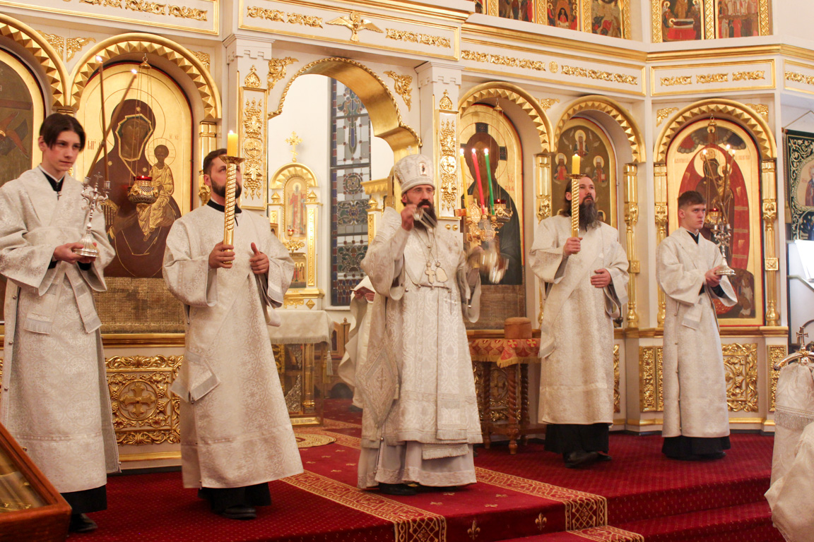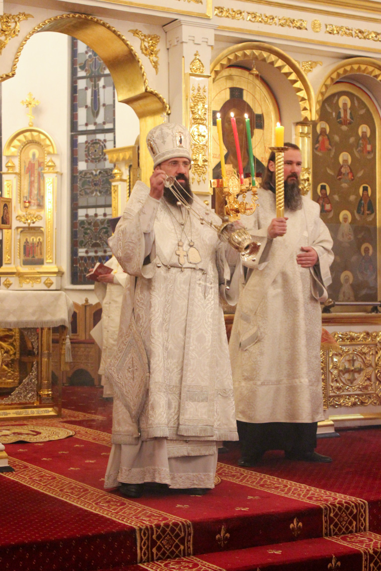 После заамвонной молитвы епископ Агафангел освятил артос, а по окончании богослужения огласил Пасхальное послание Патриарха Московского и всея Руси Кирилла.