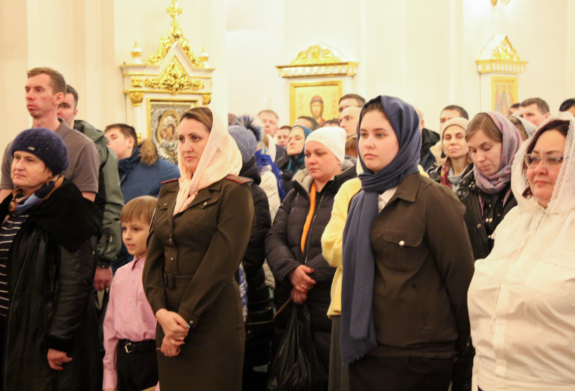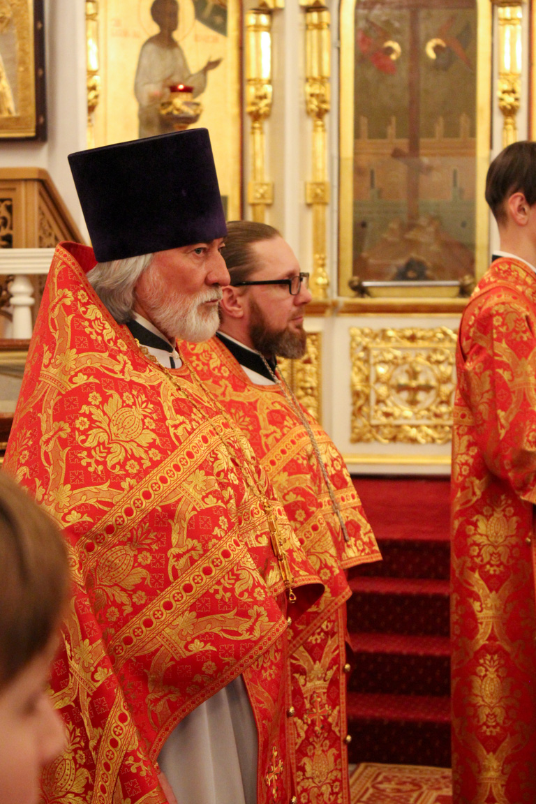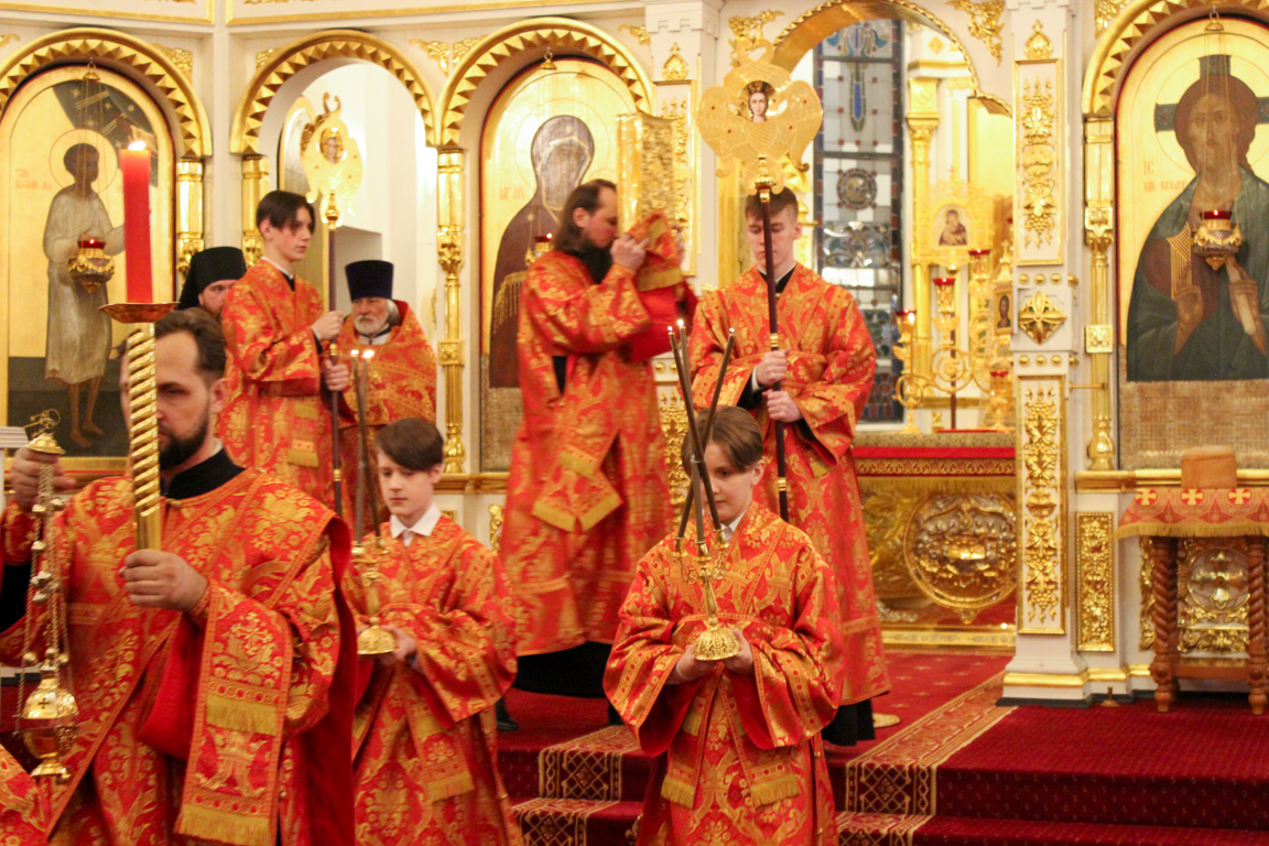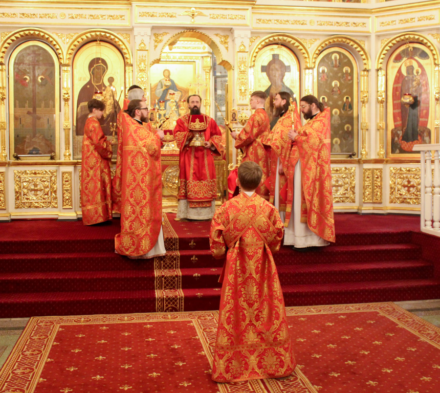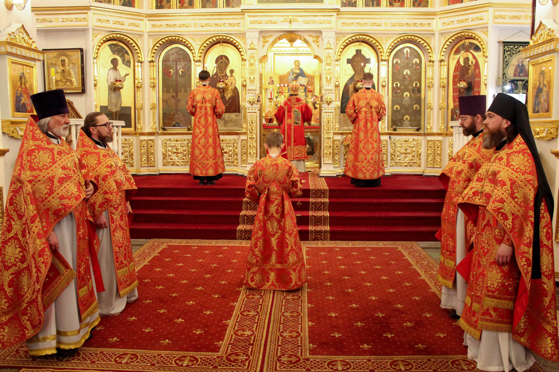 Его Преосвященству сослужили: секретарь Норильской епархии иеромонах Герман (Мельников); духовник Норильской епархии протоиерей Владимир Иванов; штатные священнослужители кафедрального собора.