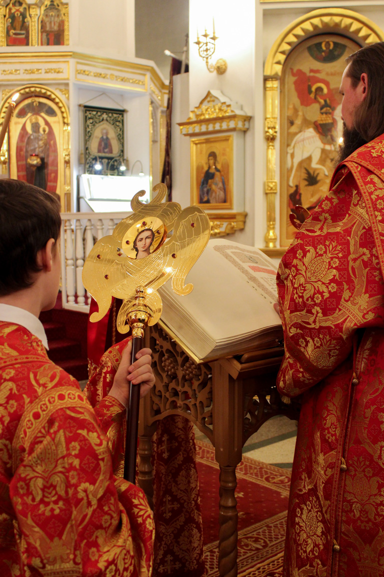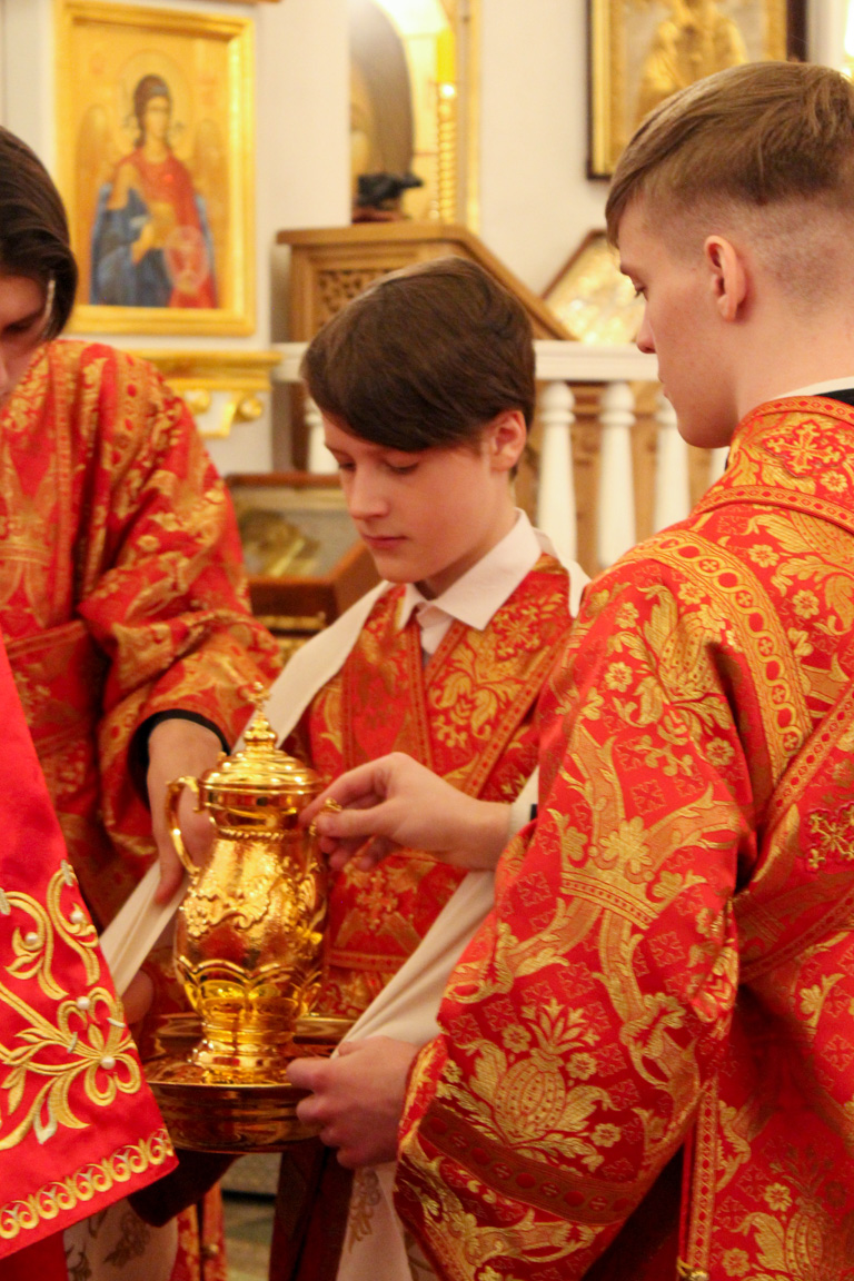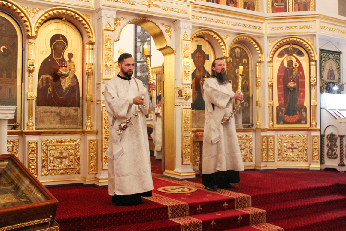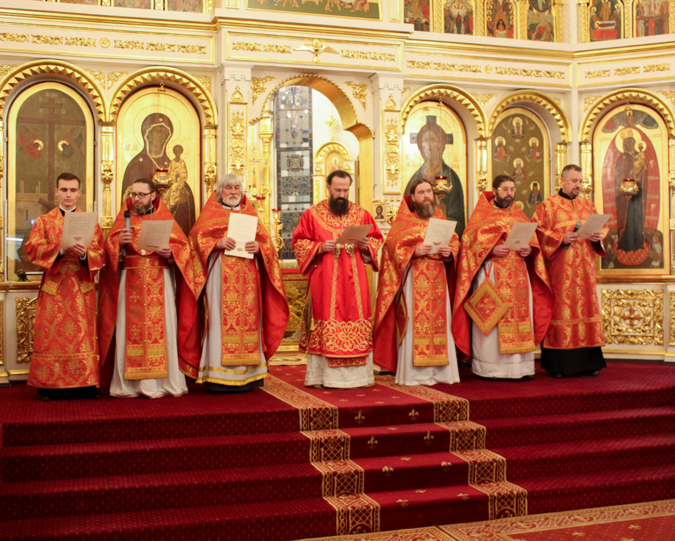 Его Преосвященству сослужили: секретарь Норильской епархии иеромонах Герман (Мельников); духовник Норильской епархии протоиерей Владимир Иванов; штатные священнослужители кафедрального собора.