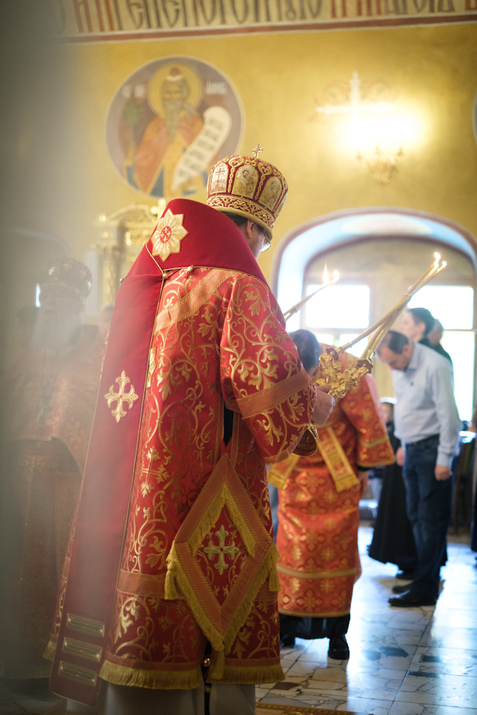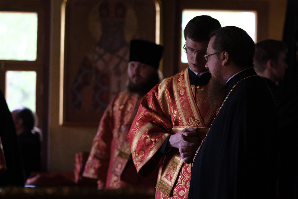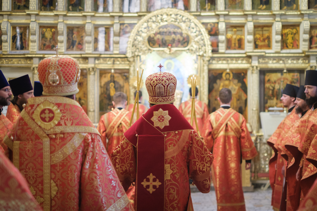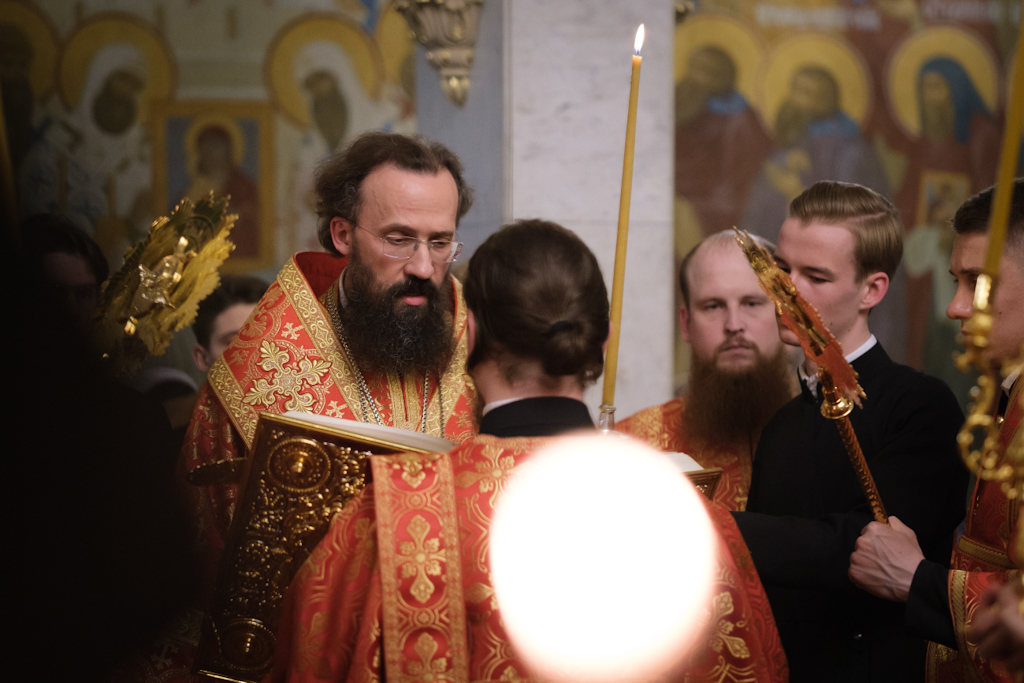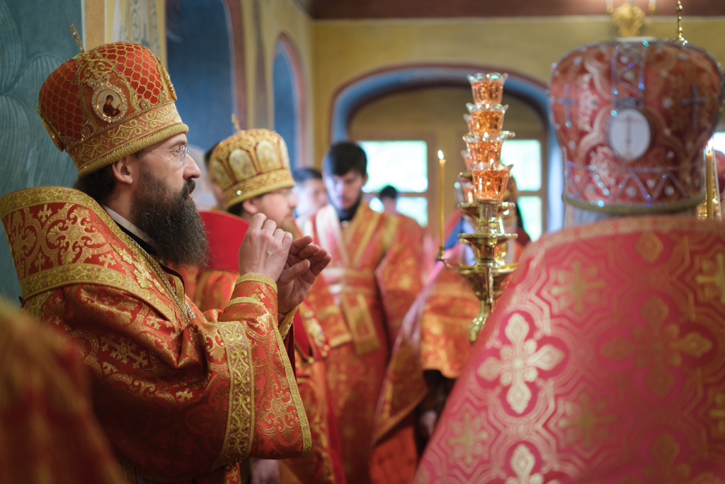 Накануне, 28 мая, в Покровском храме Московской духовной академии было совершено Всенощное бдение, которое возглавил ректор Московской духовной академии епископ Звенигородский Феодорит в сослужении епископа Норильского и Туруханского Агафангела.