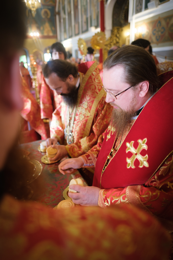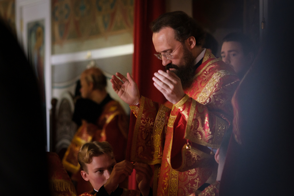 За Литургией Его Преосвященству также сослужили: проректор по воспитательной работе Московской духовной академии иеромонах Вячеслав (Сорокин), преподаватели и студенты Академии в священном сане, а также духовенство храма Покрова Пресвятой Богородицы при Московской духовной академии.