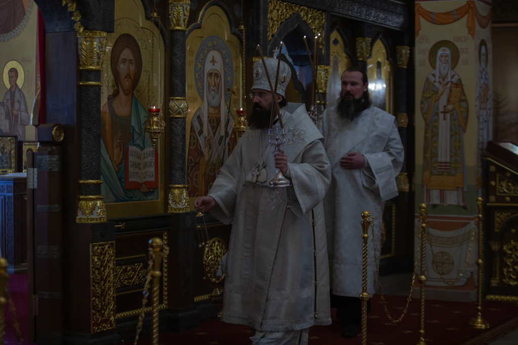 После сугубой ектении Архипастырь вознёс молитву о скорейшем восстановлении мира.