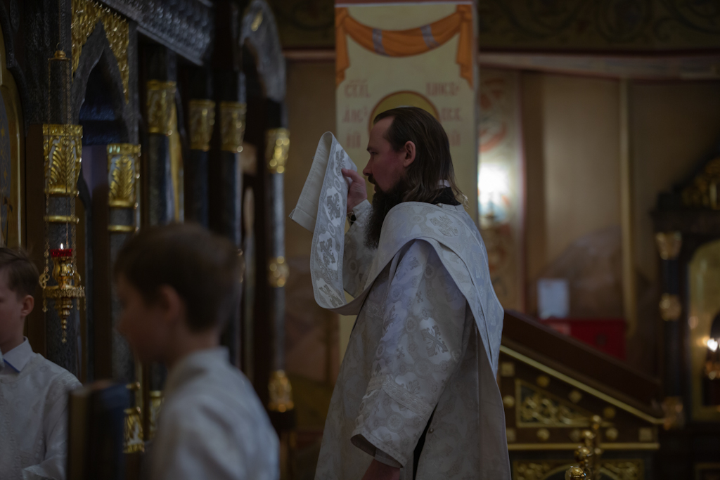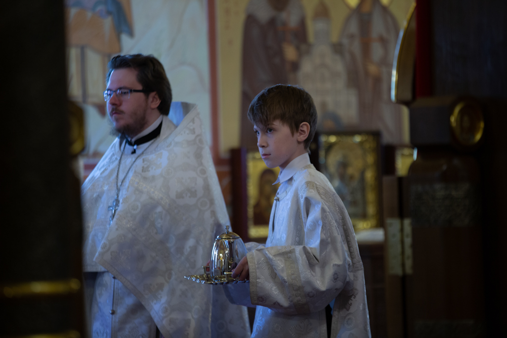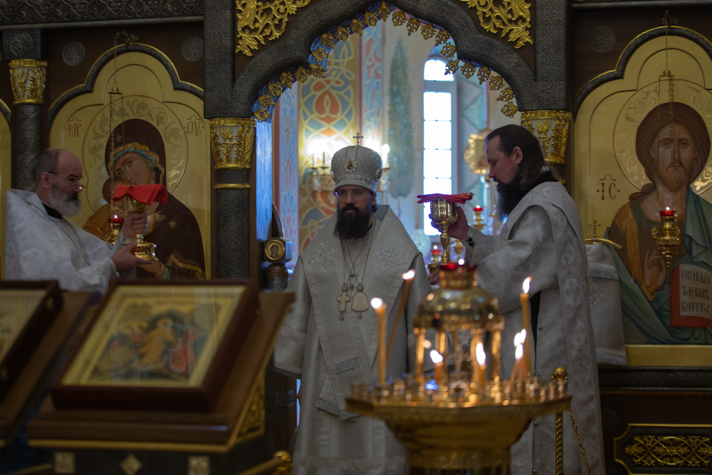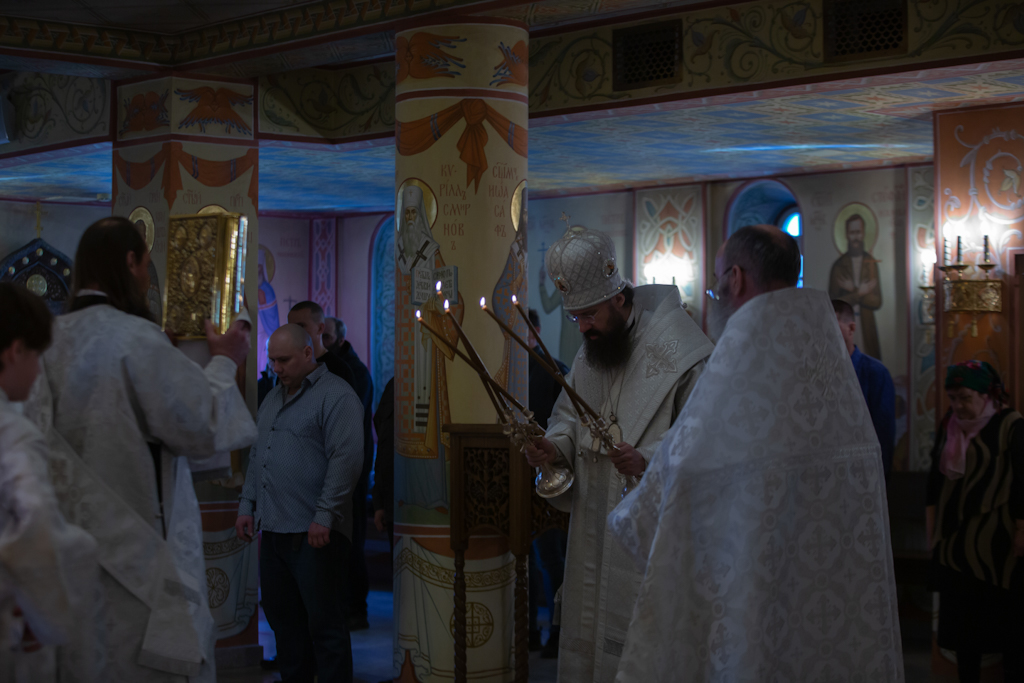 За Литургией Его Преосвященству сослужили клирики храма новомучеников и исповедников Церкви Русской г. Норильска иерей Никита Челядинов и иерей Константин Черненко.