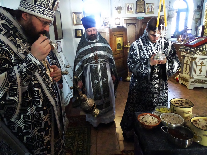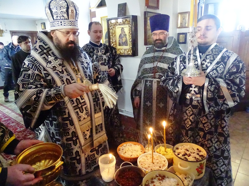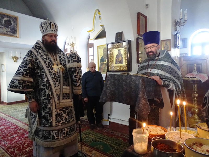 По окончании Литургии Владыка Агафангел совершил чин молебного пения великомученику Феодору Тирону и прочитал молитву над коливом.