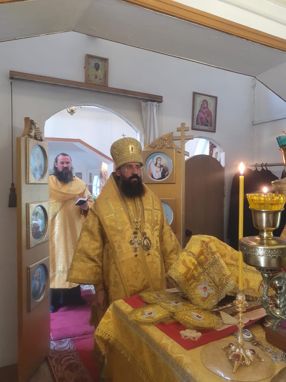 В этот день владыка совершил Божественную литургию в храме святого мученика Василия Мангазейского.