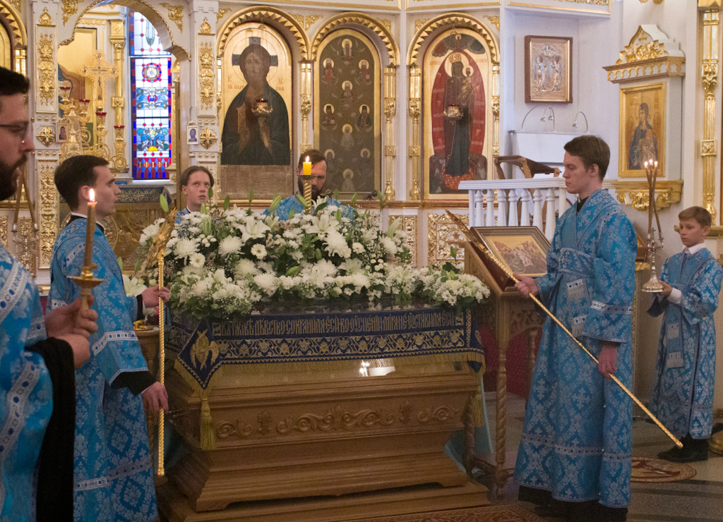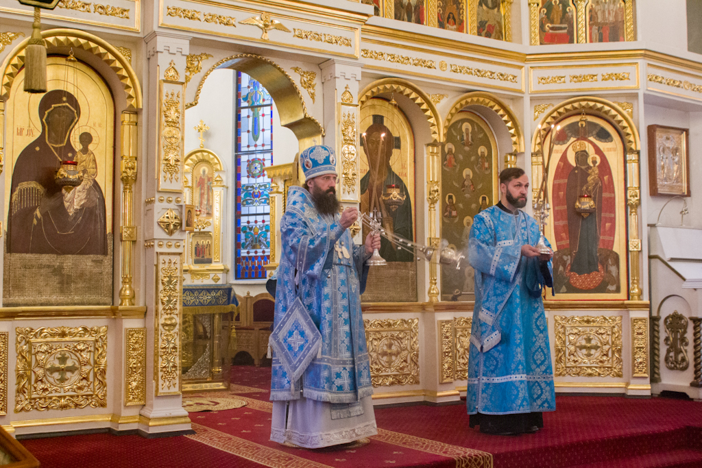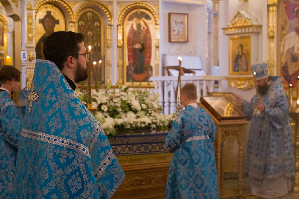 Накануне праздника, 27 августа, епископ Агафангел в сослужении духовенства совершил всенощное бдение и утреню с чином Погребения Пресвятой Богородицы.