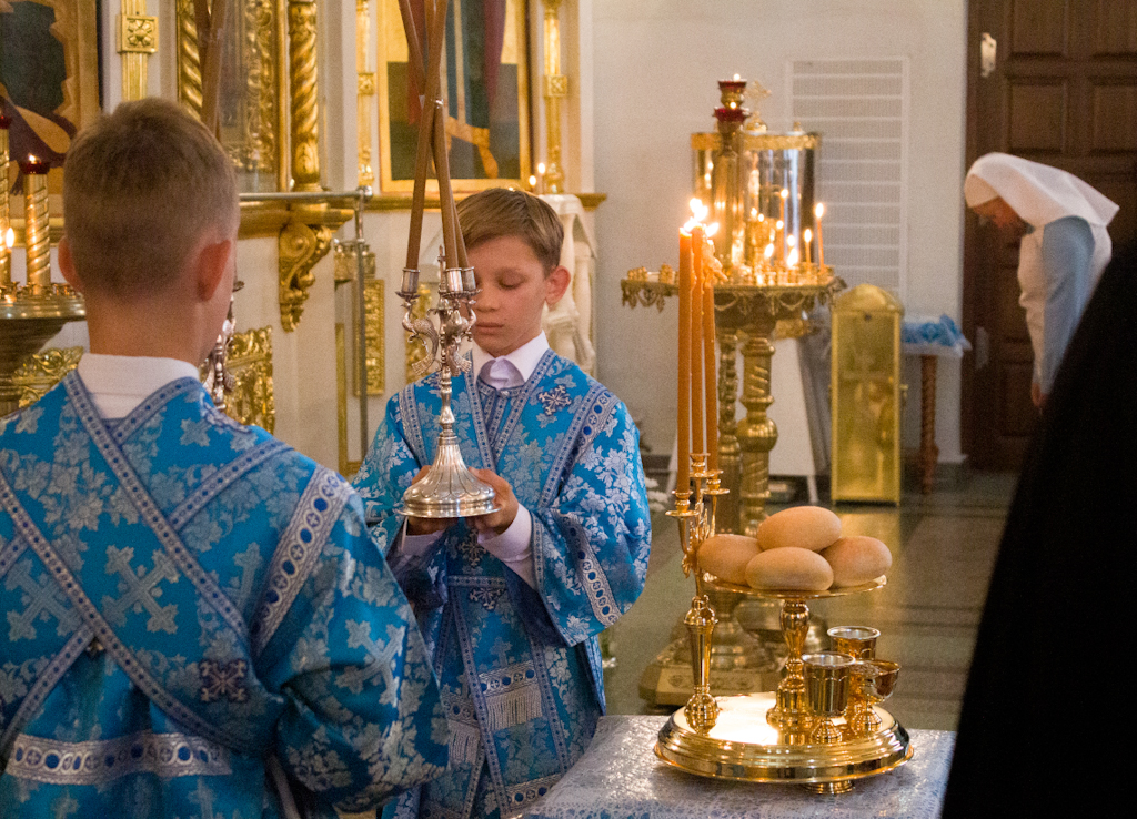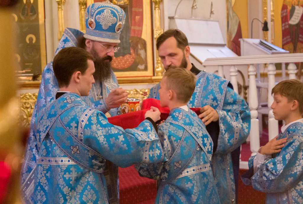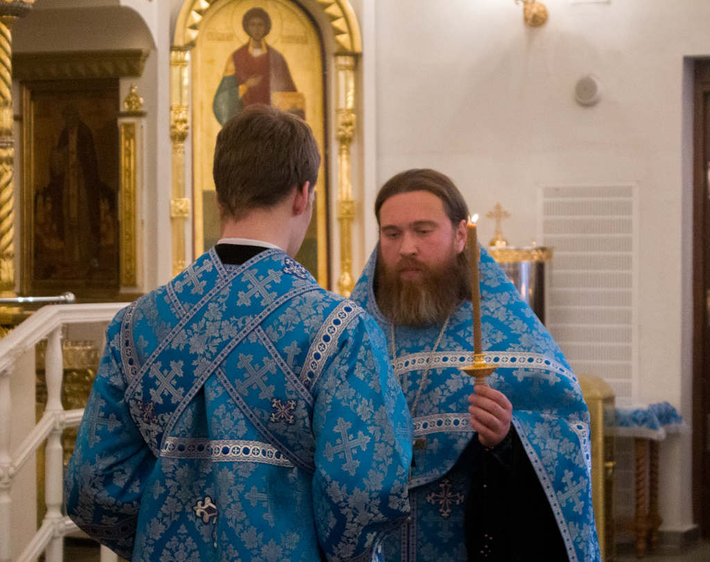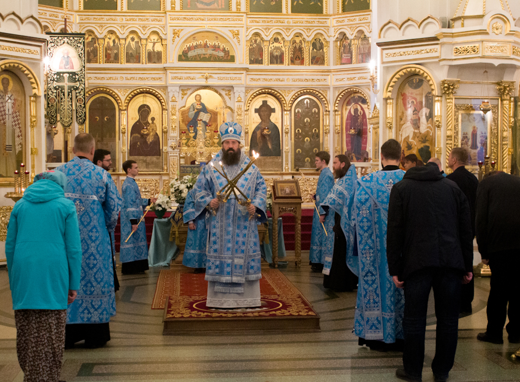 За всенощным бдением и Литургией Его Преосвященству сослужили секретарь Норильской епархии, настоятель кафедрального собора иконы Божией Матери «Всех скорбящих Радость» г. Норильска иеромонах Герман (Мельников) и заведующий канцелярией Норильского епархиального управления, благочинный кафедрального собора иерей Димитрий Прохоров.
