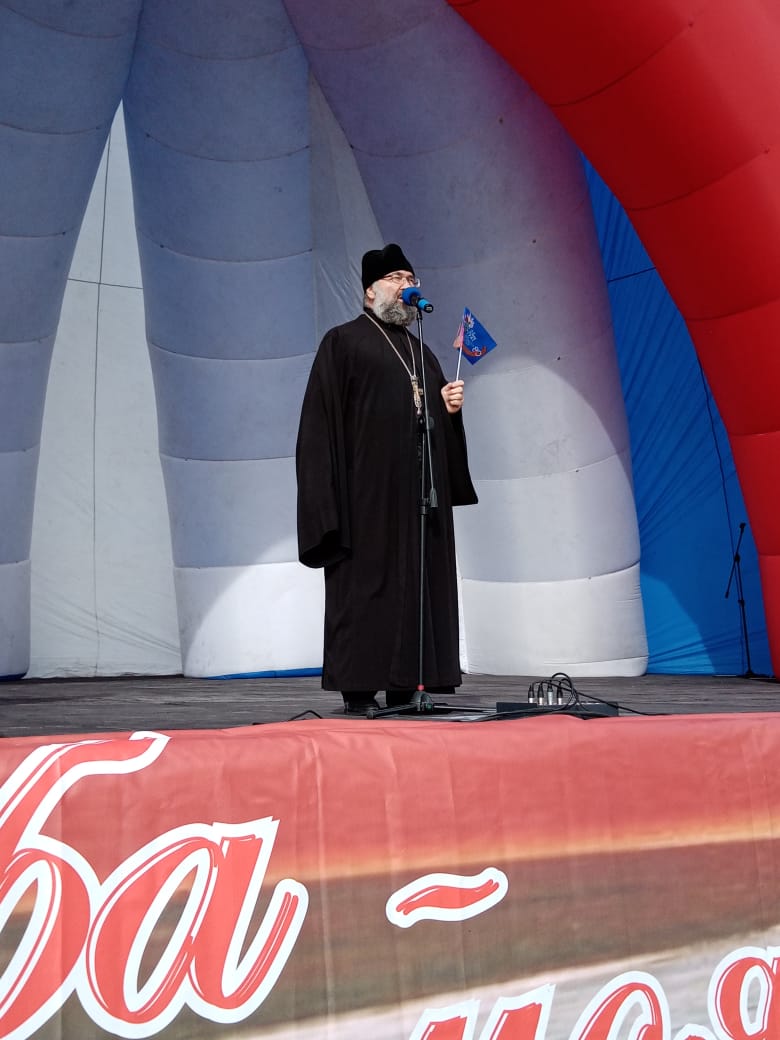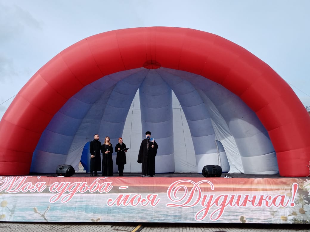 На центральной площади города Дудинки состоялся праздничный концерт, во время которого священник обратился к присутствующим с приветственным словом.