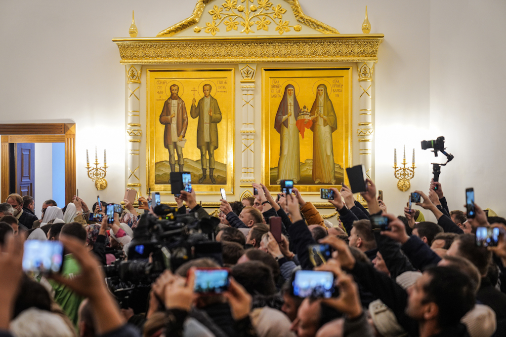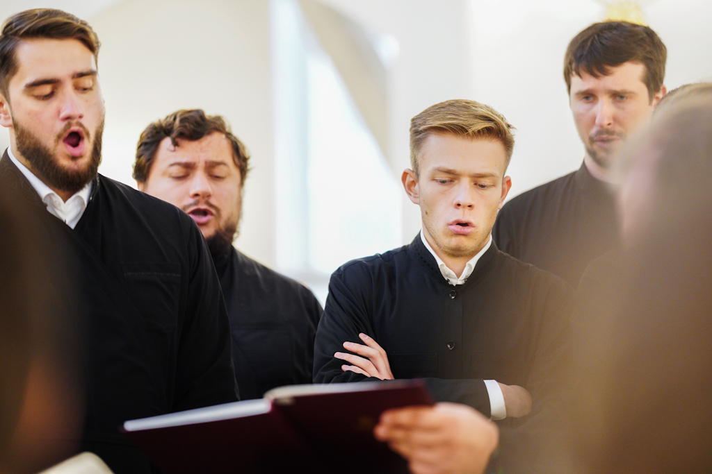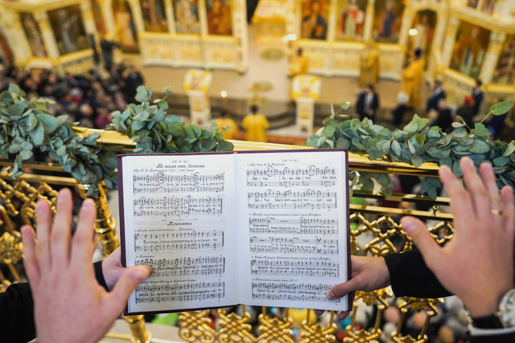 Богослужебные песнопения исполнил сводный хор Троице-Сергиевой лавры и Московской духовной академии под управлением иеромонаха Нестора (Волкова).