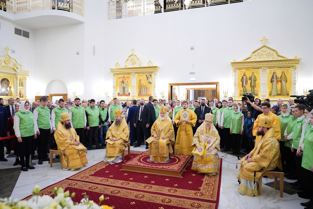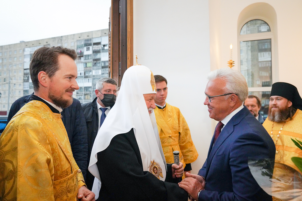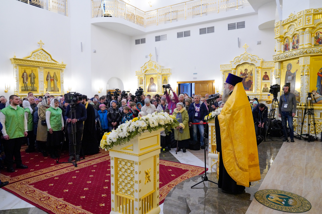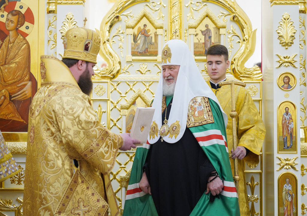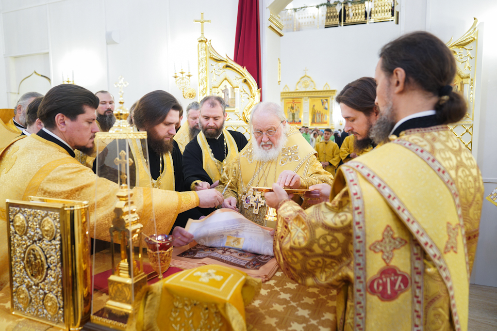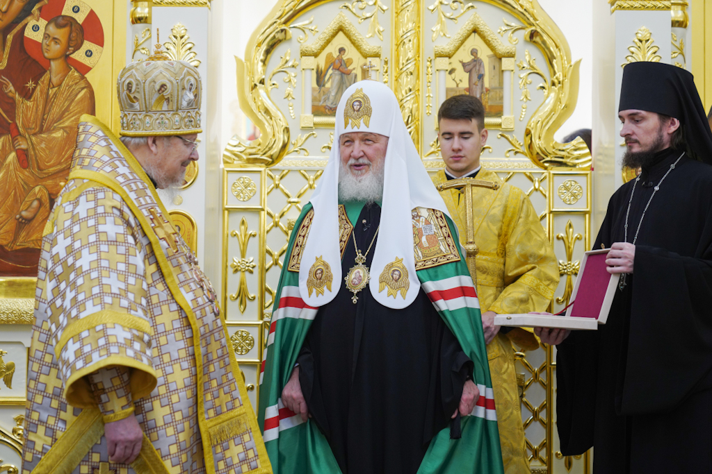 Президенту, председателю правления ПАО «ГМК "Норильский никель"» В.О. Потанину Святейший Патриарх Кирилл вручил икону благоверного князя Александра Невского, митрополиту Красноярскому и Ачинскому Пантелеимону — памятный крест и панагию, епископу Норильскому и Туруханскому Агафангелу и епископу Енисейскому и Лесосибирскому Игнатию — памятные панагии. Всем участникам богослужения Святейший Владыка благословил раздать иконки Христа Спасителя с Патриаршим благословением.
