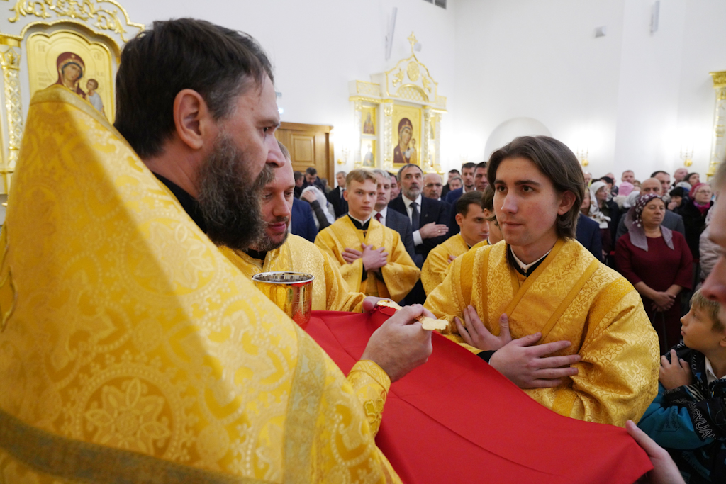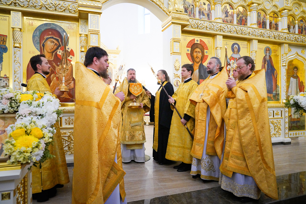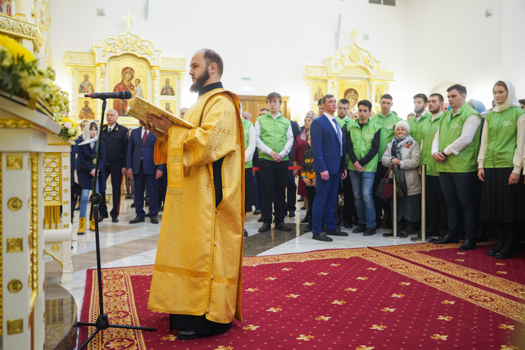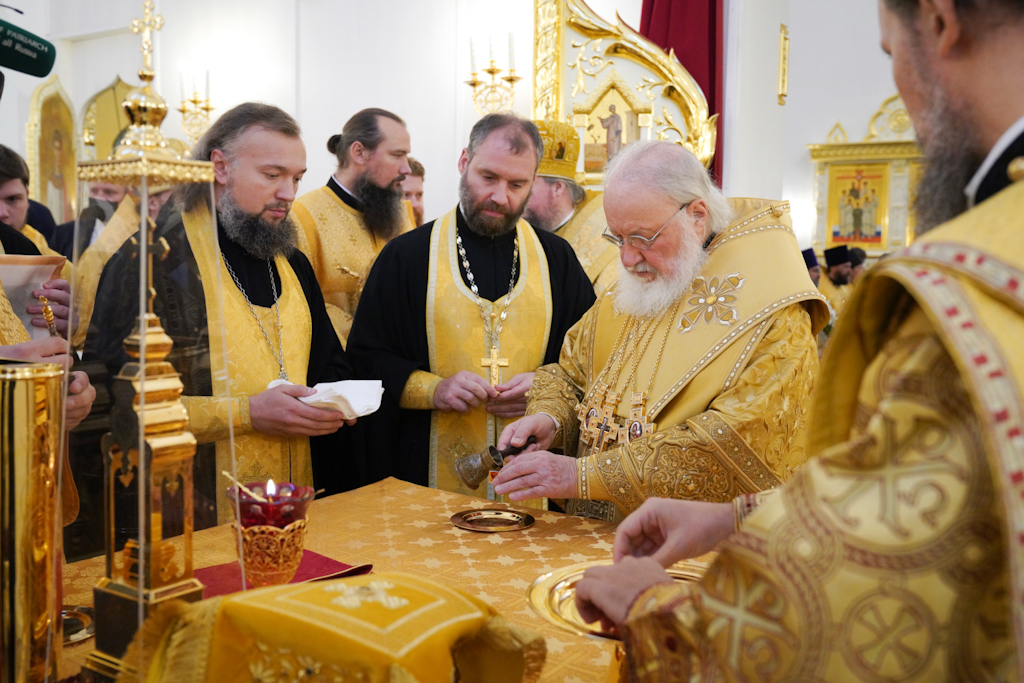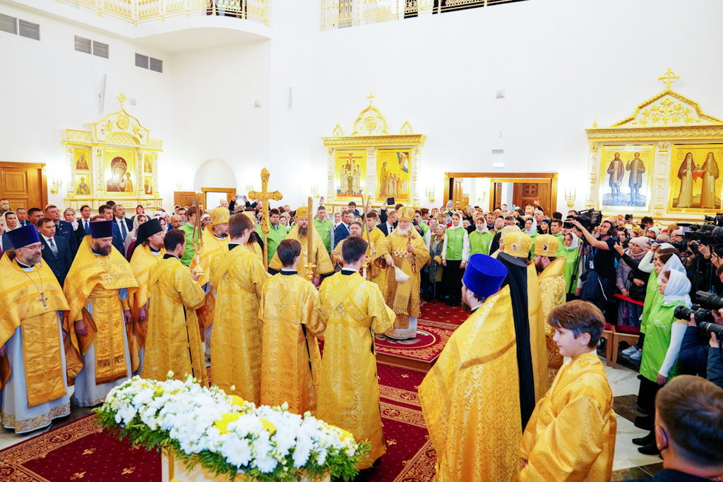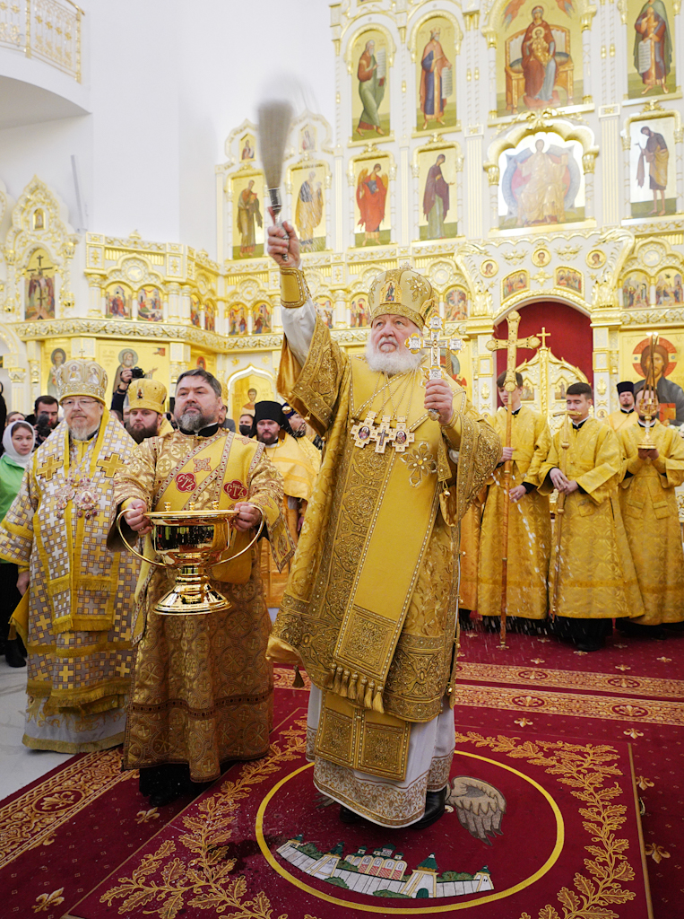 Президенту, председателю правления ПАО «ГМК "Норильский никель"» В.О. Потанину Святейший Патриарх Кирилл вручил икону благоверного князя Александра Невского, митрополиту Красноярскому и Ачинскому Пантелеимону — памятный крест и панагию, епископу Норильскому и Туруханскому Агафангелу и епископу Енисейскому и Лесосибирскому Игнатию — памятные панагии. Всем участникам богослужения Святейший Владыка благословил раздать иконки Христа Спасителя с Патриаршим благословением.
