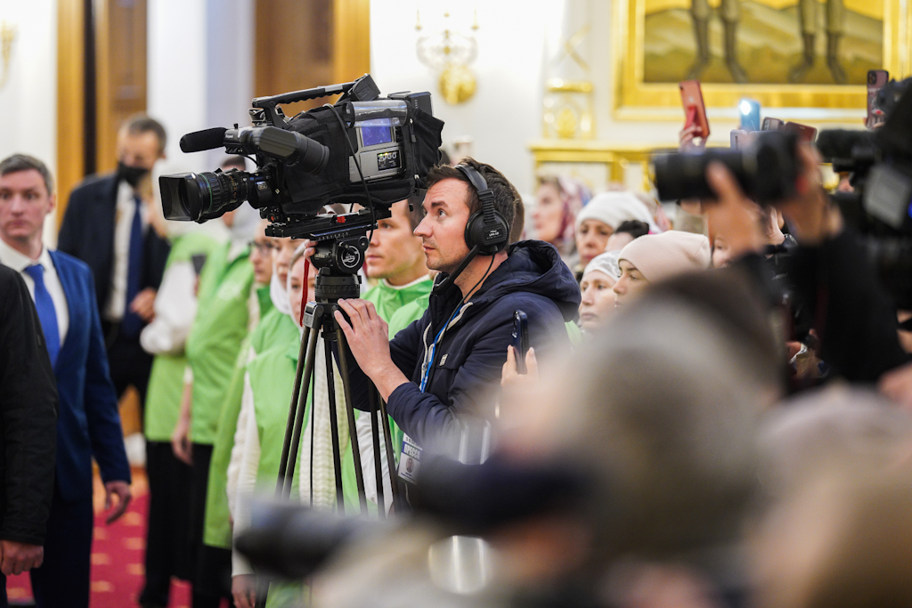На телеканалах «Союз», «Норильск ТВ» и на официальном портале Русской Православной Церкви Патриархия.ru осуществлялась прямая трансляция Патриаршего богослужения. Трансляция была выведена на большой экран, установленный на площади перед храмом.