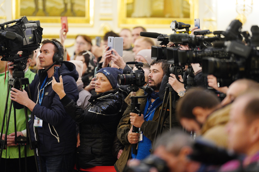 В завершение Святейший Патриарх Кирилл во внимание к трудам по строительству храмового комплекса великомученицы Варвары г. Норильска Красноярского края наградил епископа Норильского и Туруханского Агафангела орденом преподобного Серафима Саровского III степени.