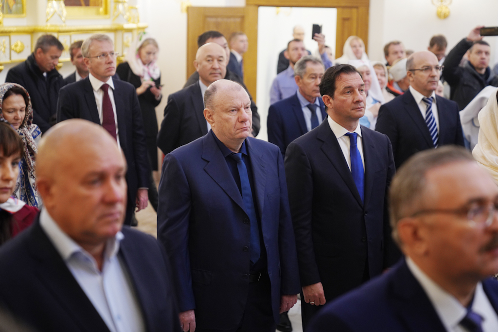 В храме присутствовали: губернатор Красноярского края А.В. Усс, мэр г. Норильска Д.В. Карасев, президент, председатель правления ПАО «ГМК "Норильский никель"» В.О. Потанин, старший вице-президент, финансовый директор ПАО «ГМК "Норильский никель"» С.Г. Малышев, старший вице-президент, руководитель Блока кадровой, социальной политики и связей с общественностью ПАО «ГМК "Норильский никель"» Л.Г. Зелькова, старший вице-президент, руководитель Блока стратегии и управления стратегическими проектами, логистики и ресурсного обеспечения ПАО «ГМК "Норильский никель"» С.А. Дубовицкий, вице-президент по экономике ПАО «ГМК "Норильский никель"» Д.С. Кушнарев, директор Заполярного филиала ПАО «ГМК "Норильский никель"» Н.Н. Уткин, первый заместитель директора Заполярного филиала ПАО «ГМК "Норильский никель"» К.Р. Матюшин, строители, благотворители и благоукрасители храма, православные добровольцы, верующие.