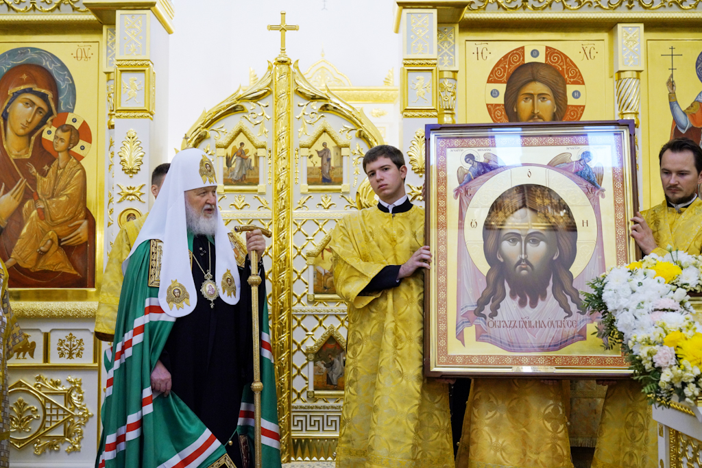 В дар новоосвященному храму Святейший Владыка передал образ Спаса Нерукотворного.