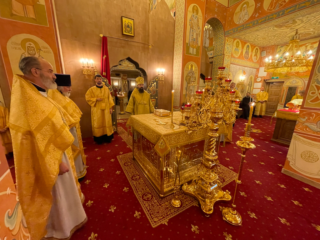 Накануне, 29 октября, епископ Агафангел в сослужении духовенства совершил всенощное бдение в кафедральном соборе иконы Божией Матери «Всех скорбящих Радость» города Норильска.