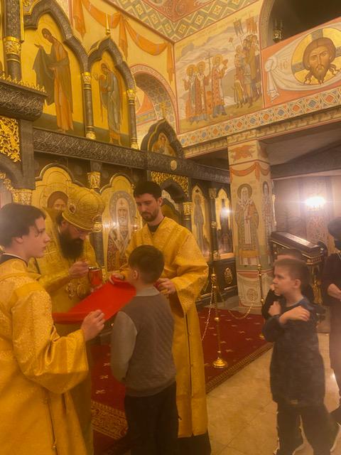 За Литургией Его Преосвященству сослужили: благочинный Норильского округа, настоятель храма святых новомучеников и исповедников Церкви Русской города Норильска иерей Геннадий Дубинко; заведующий канцелярией Норильского епархиального управления иерей Димитрий Прохоров; заместитель руководителя епархиального отдела по социальному служению и церковной благотворительности иерей Никита Челядинов; клирик храма святых новомучеников и исповедников Церкви Русской г. Норильска иерей Константин Черненко.
