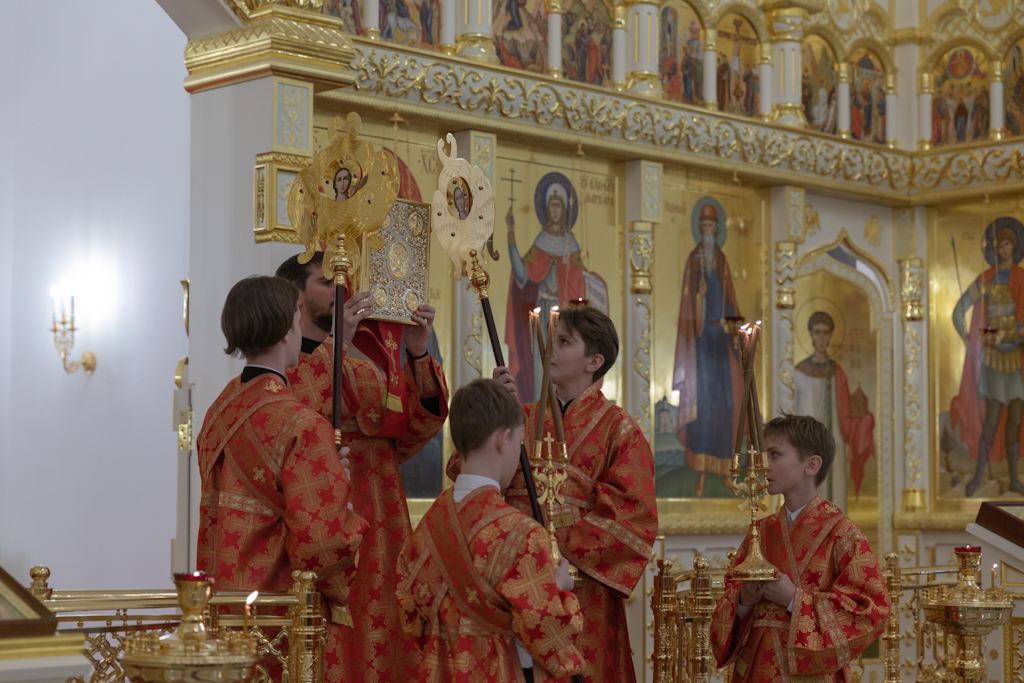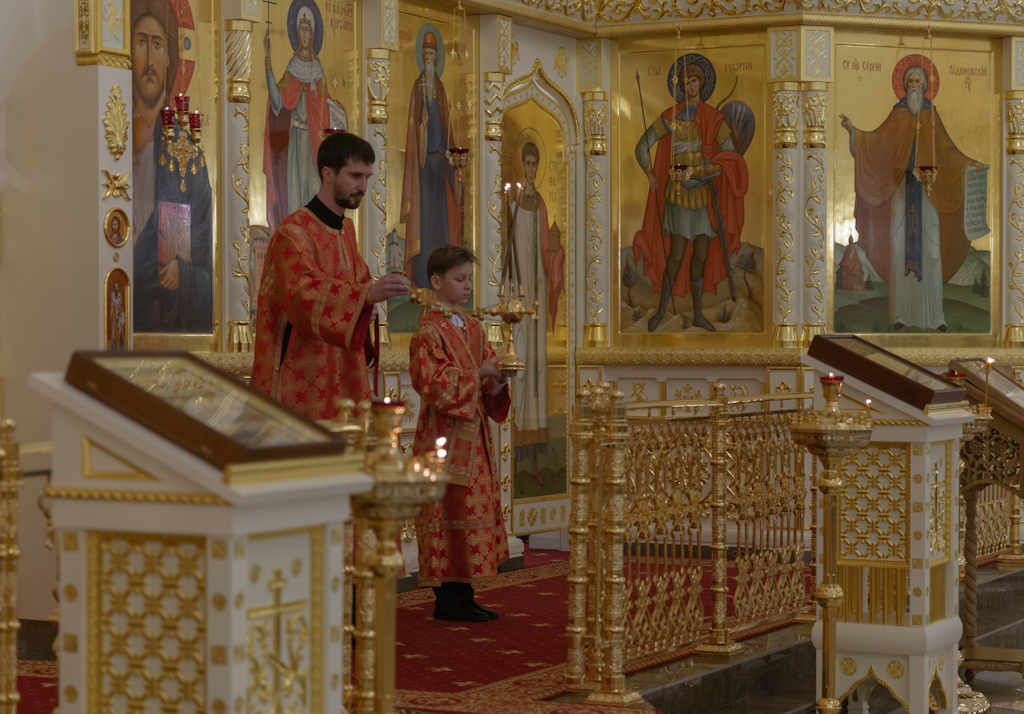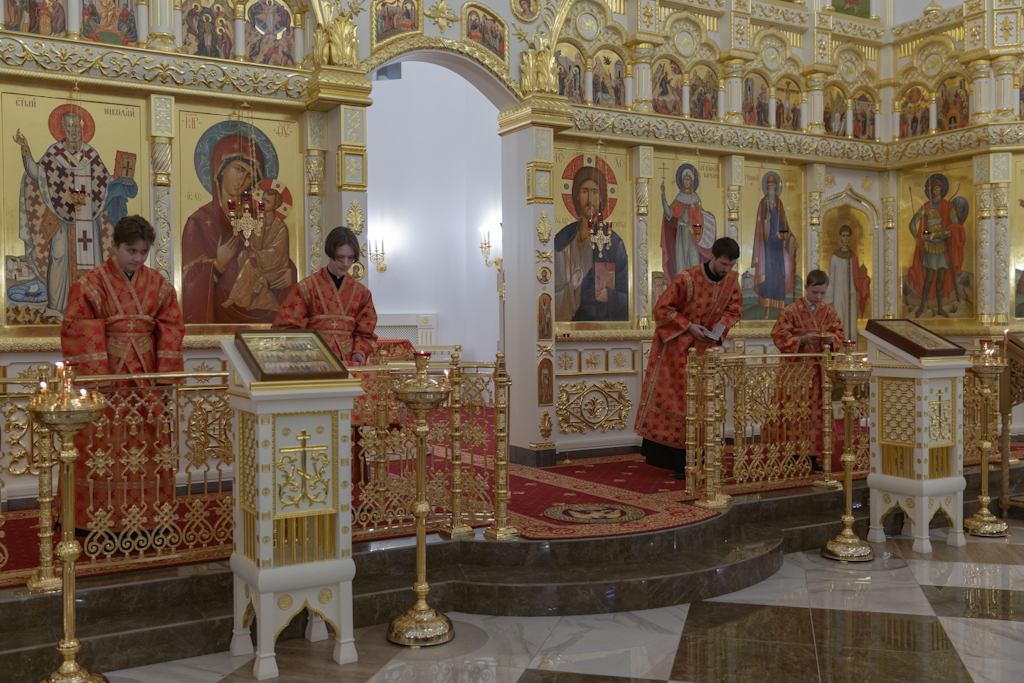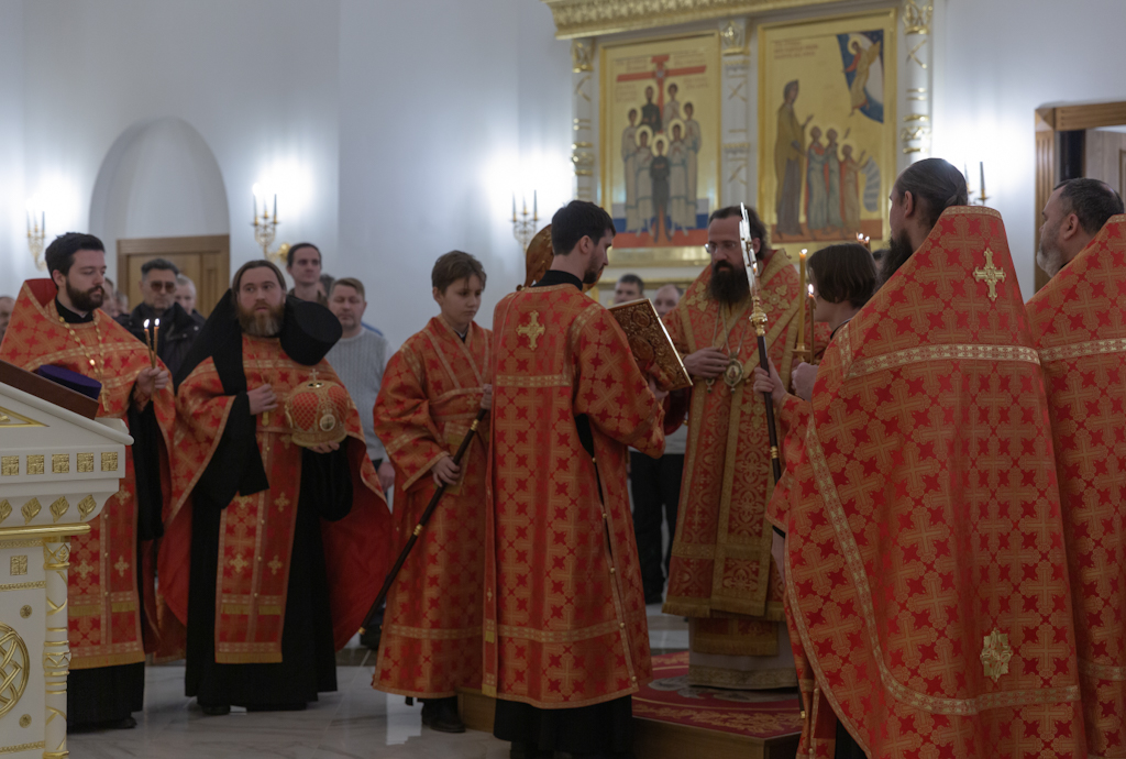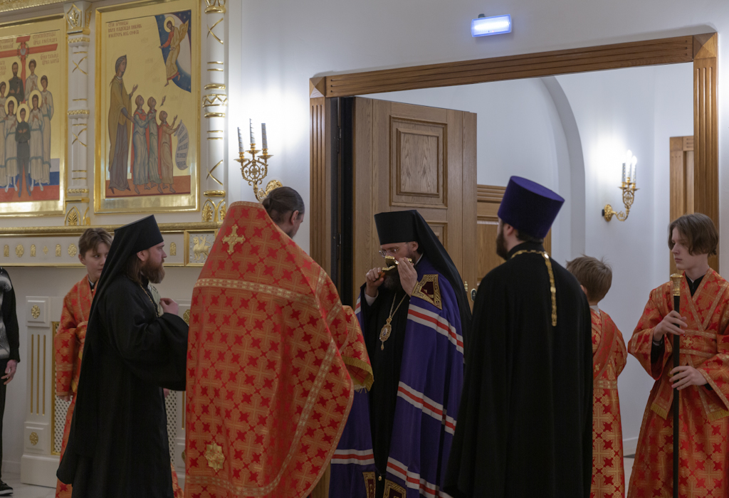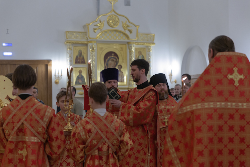 Его Преосвященству сослужили: секретарь Норильской епархии, настоятель храма великомученицы Варвары района Талнах города Норильска иеромонах Герман (Мельников); заведующий канцелярией Норильского епархиального управления, благочинный кафедрального собора иконы Божией Матери «Всех скорбящих Радость» города Норильска иерей Димитрий Прохоров; руководитель епархиального отдела по взаимодействию с казачеством, клирик храма Святой Троицы района Талнах города Норильска иерей Сергий Кузьменко; заместитель руководителя епархиального отдела религиозного образования и катехизации, клирик храма великомученицы Варвары иерей Антоний Проняев.